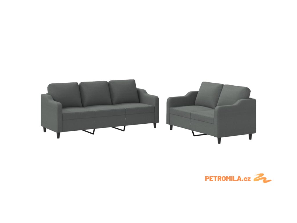 2dílná sedací souprava s poduškami tmavě šedá textil