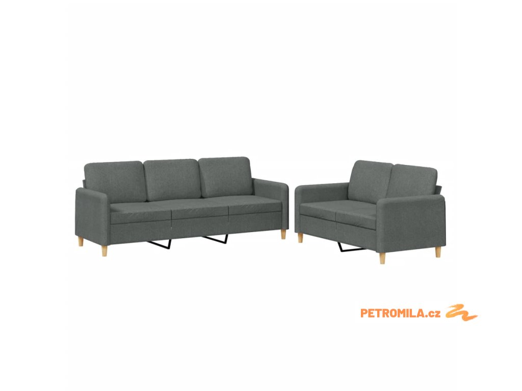 2dílná sedací souprava s poduškami tmavě šedá textil
