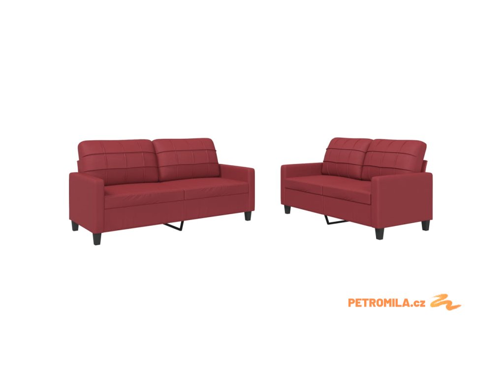 2dílná sedací souprava s poduškami vínová umělá kůže