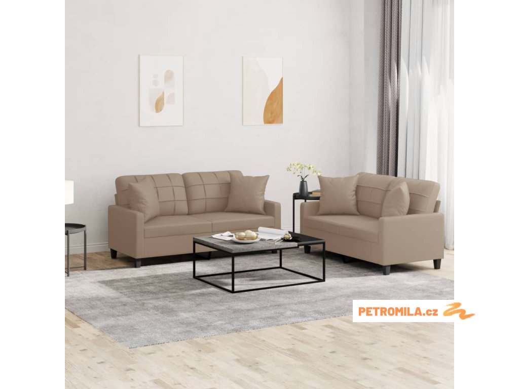 2dílná sedací souprava s polštáři cappuccino umělá kůže