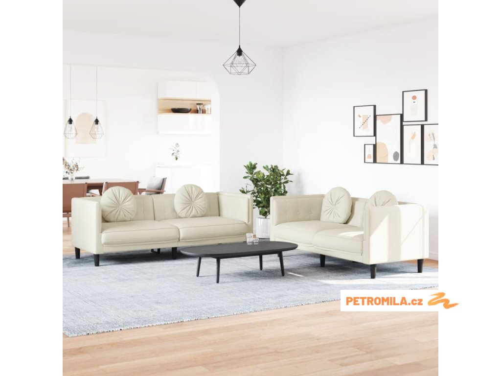 2dílná sedací souprava s polštáři krémová samet