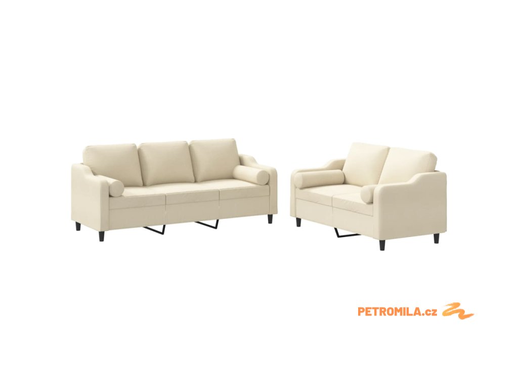 2dílná sedací souprava s polštáři krémová textil