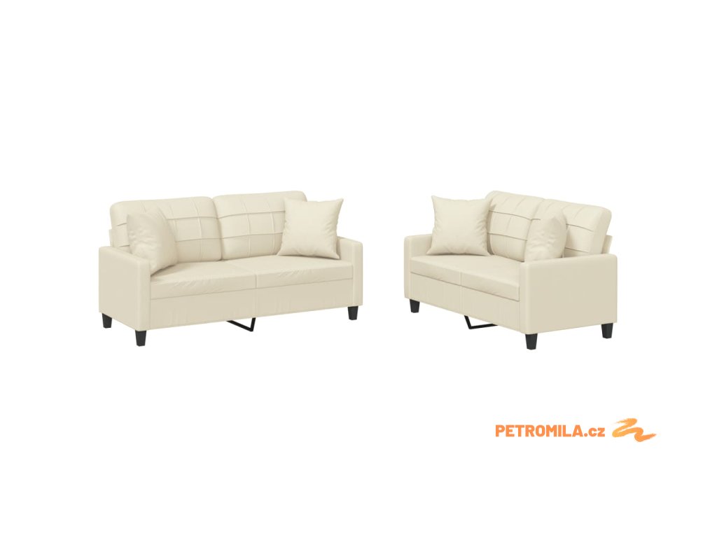 2dílná sedací souprava s polštáři krémová umělá kůže