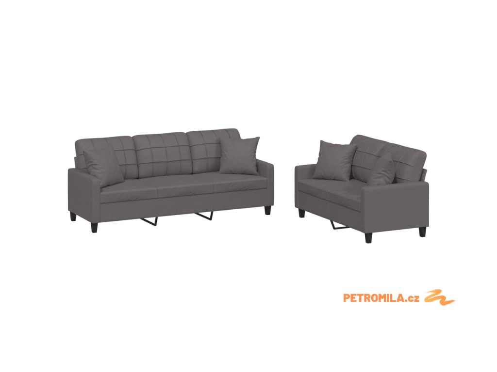 2dílná sedací souprava s polštáři šedá umělá kůže