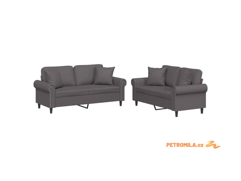 2dílná sedací souprava s polštáři šedá umělá kůže
