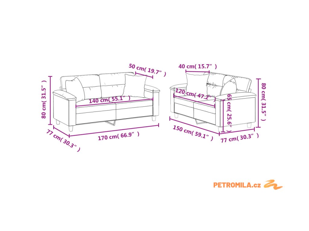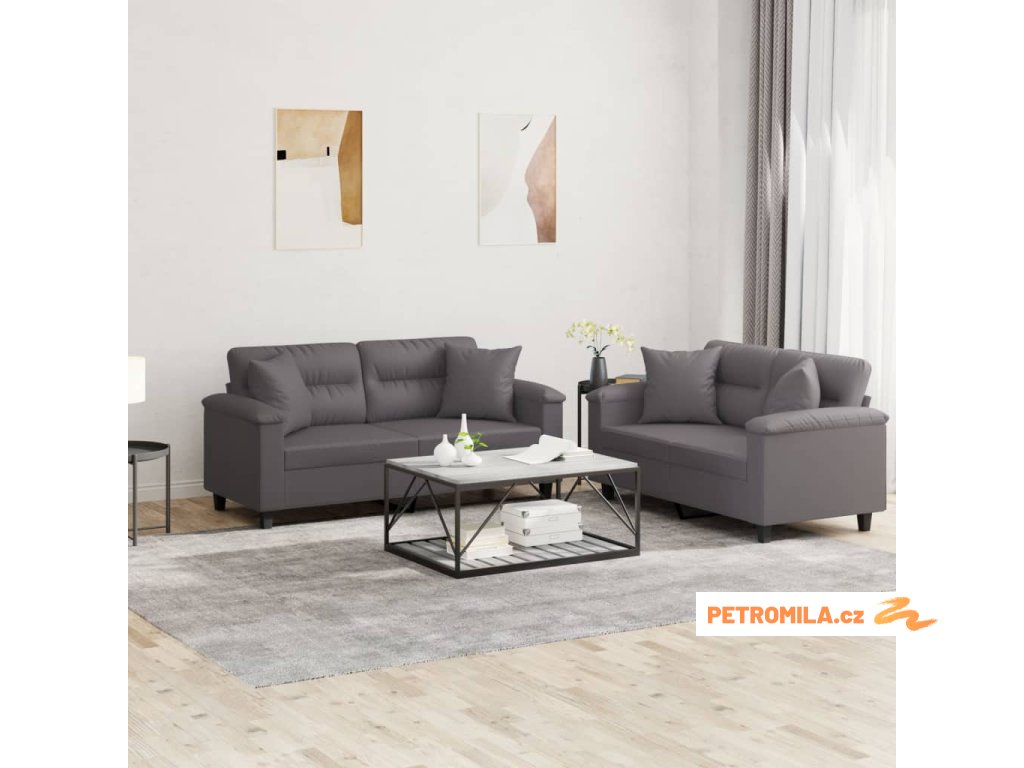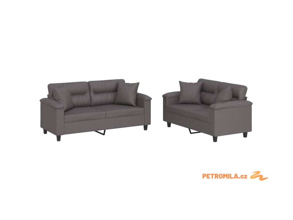 2dílná sedací souprava s polštáři šedá umělá kůže