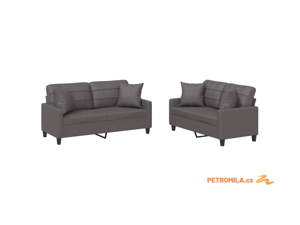 2dílná sedací souprava s polštáři šedá umělá kůže