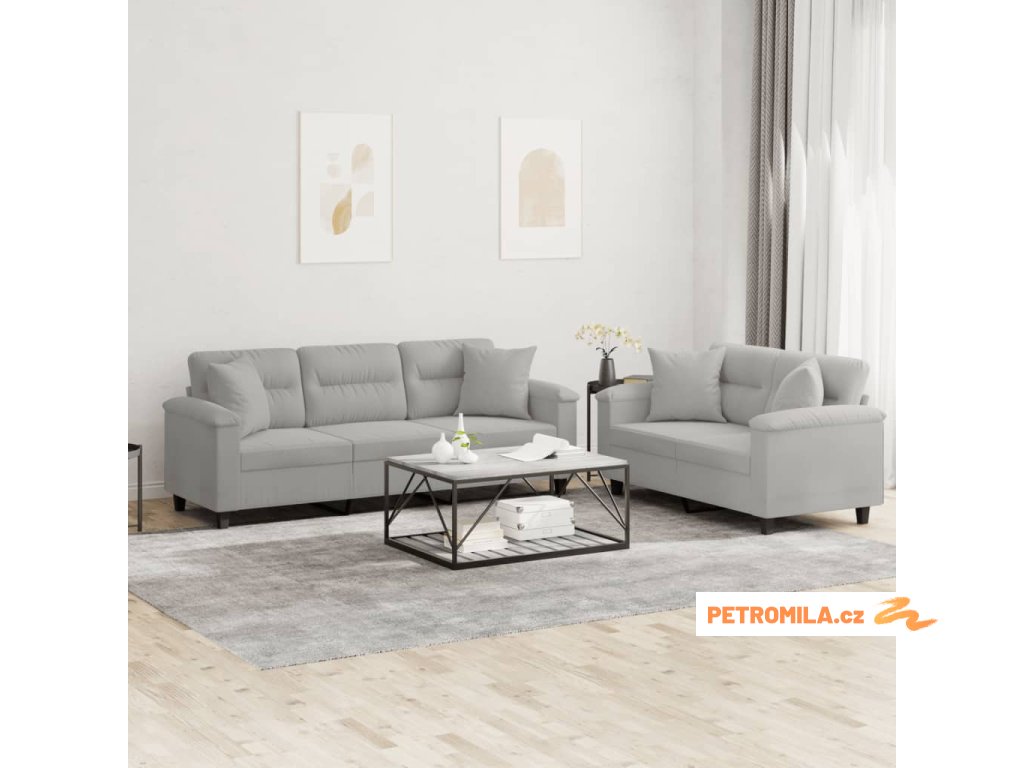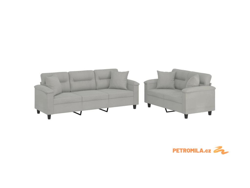 2dílná sedací souprava s polštáři světle šedá mikrovlákno