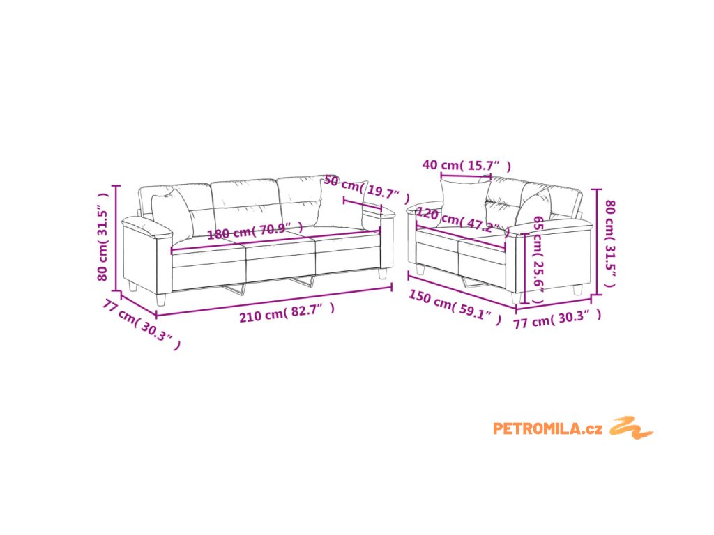 - Rozměry polštáře (každý): 40 x 40 cm (Š x H)