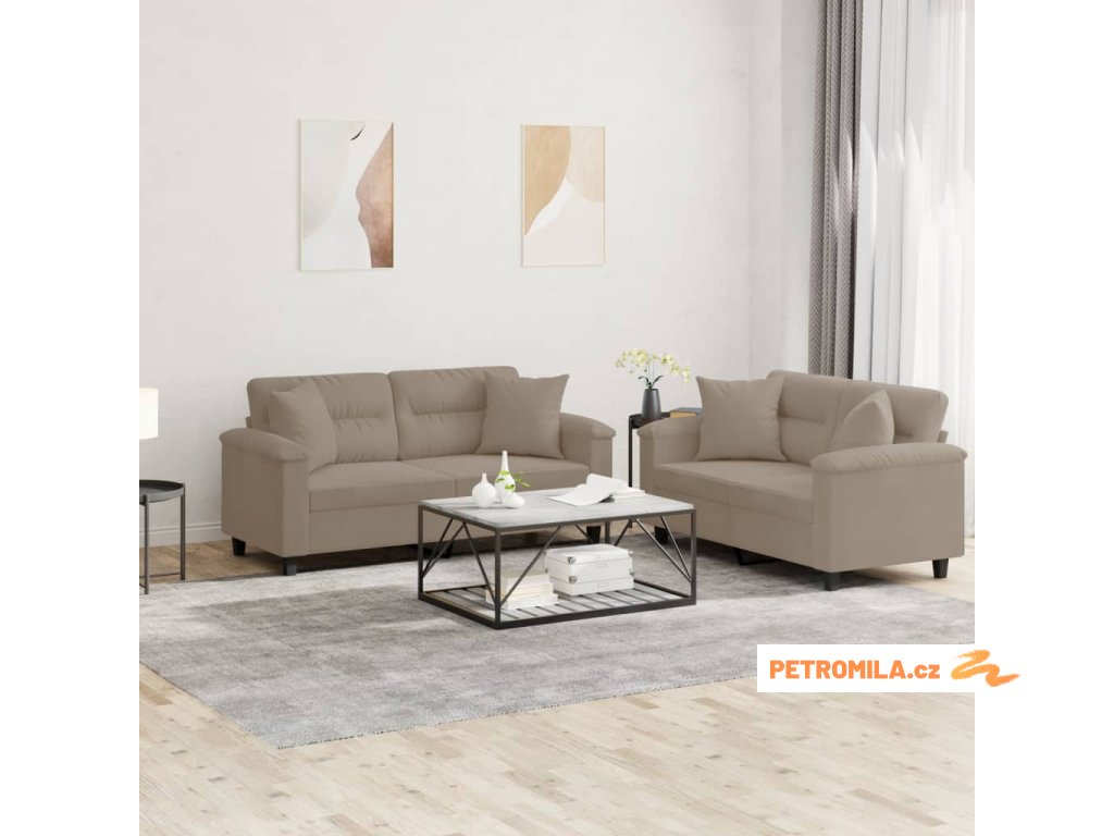 2dílná sedací souprava s polštáři taupe tkanina z mikrovlákna