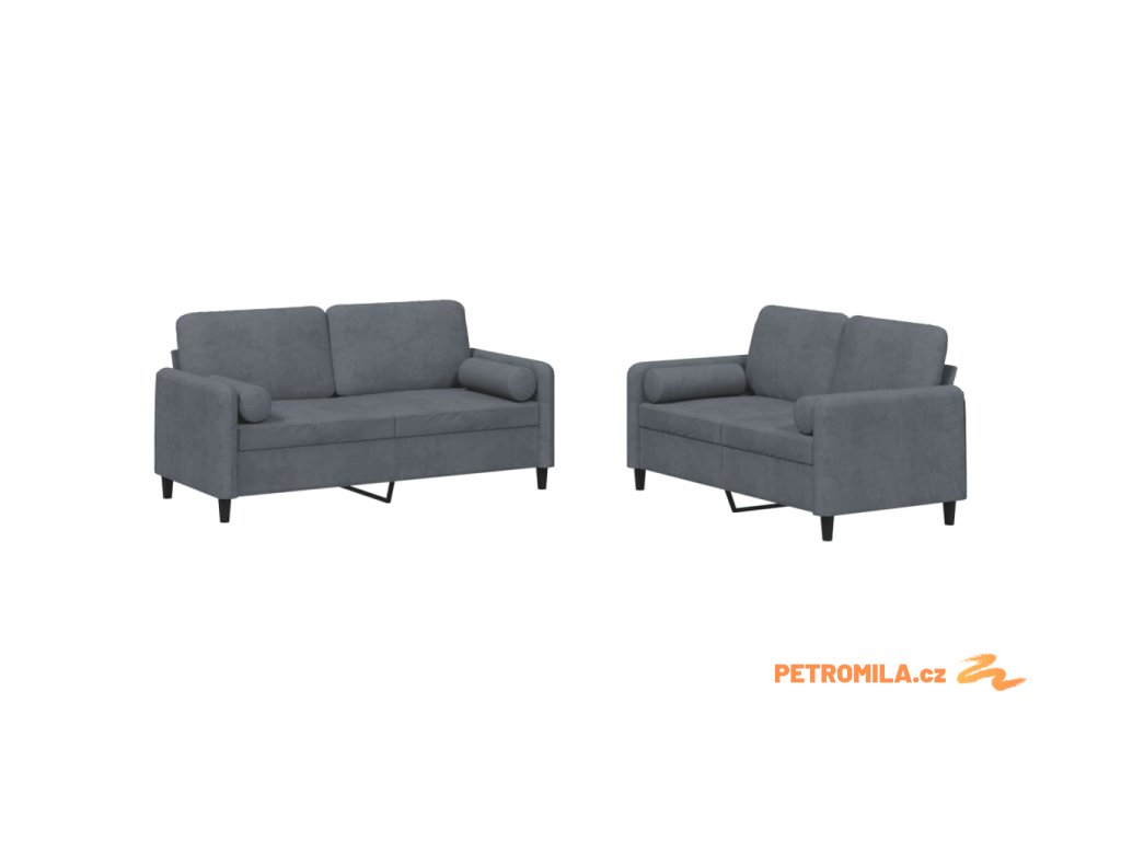 2dílná sedací souprava s polštáři tmavě šedá samet