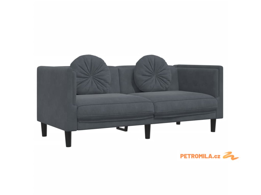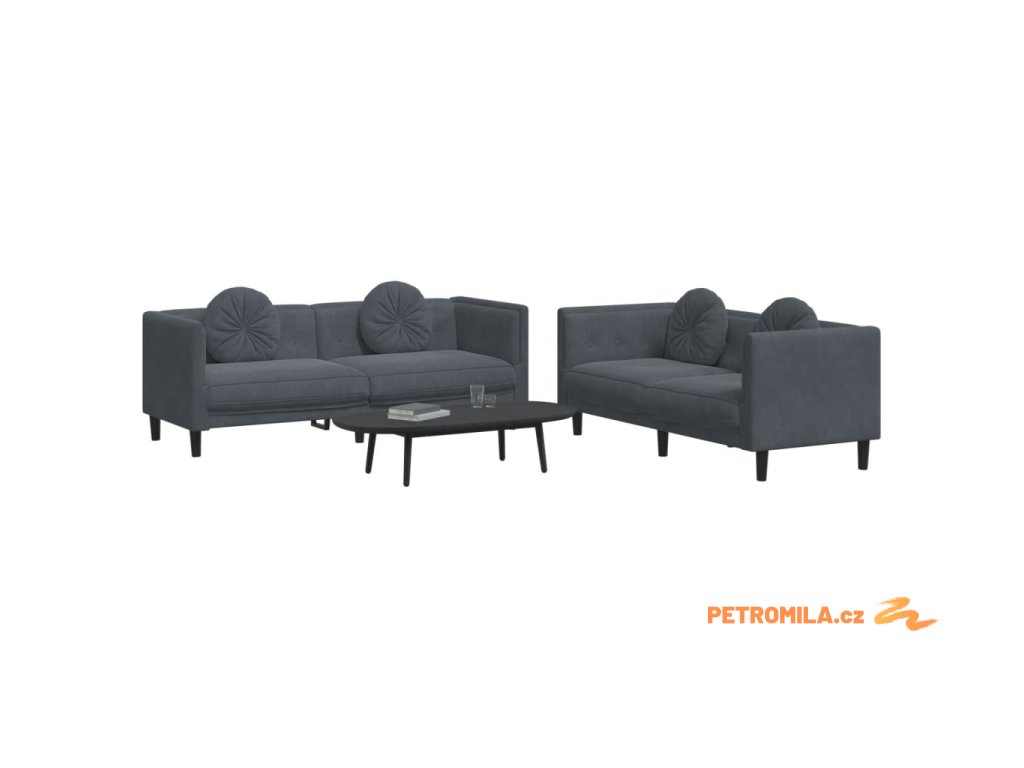 2dílná sedací souprava s polštáři tmavě šedá samet