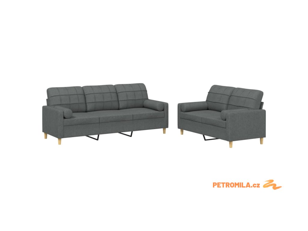 2dílná sedací souprava s polštáři tmavě šedá textil