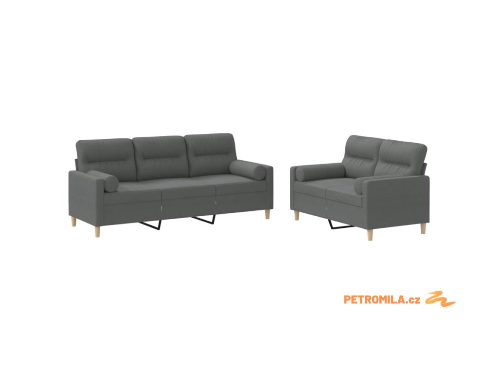 2dílná sedací souprava s polštáři tmavě šedá textil
