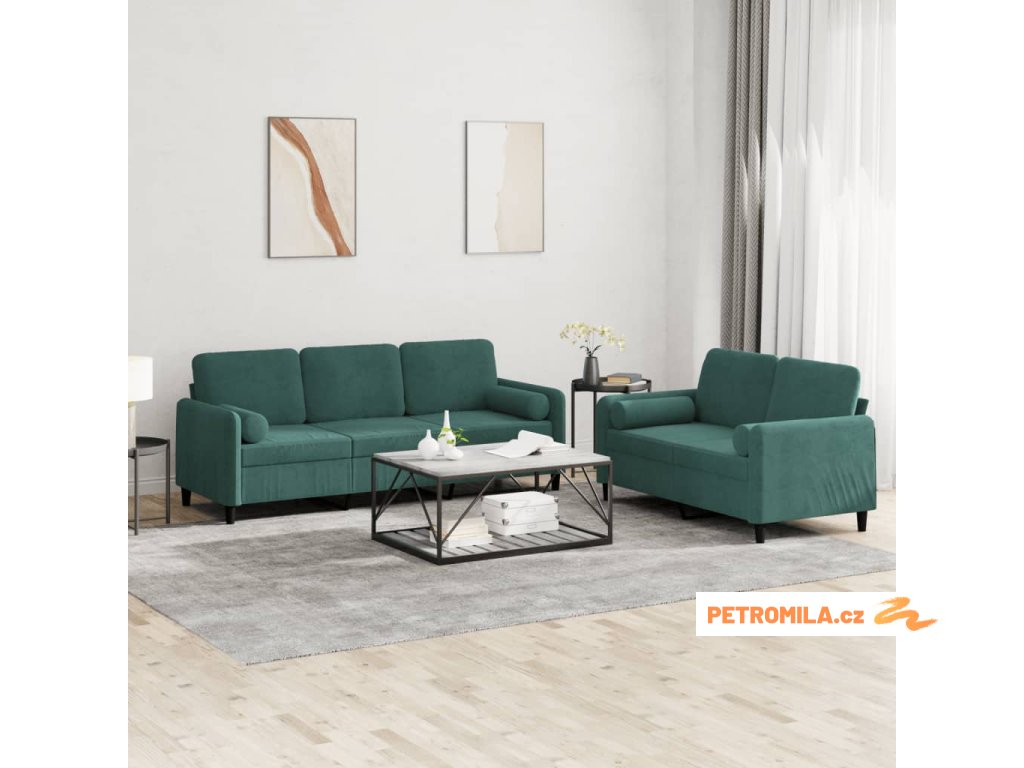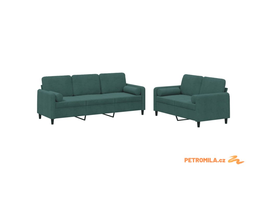 2dílná sedací souprava s polštáři tmavě zelená samet