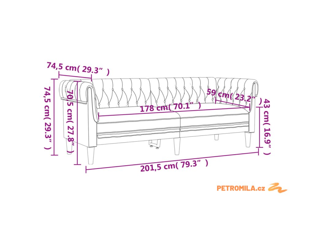 - Celkové rozměry: 201,5 x 74,5 x 74,5 cm (Š x H x V)