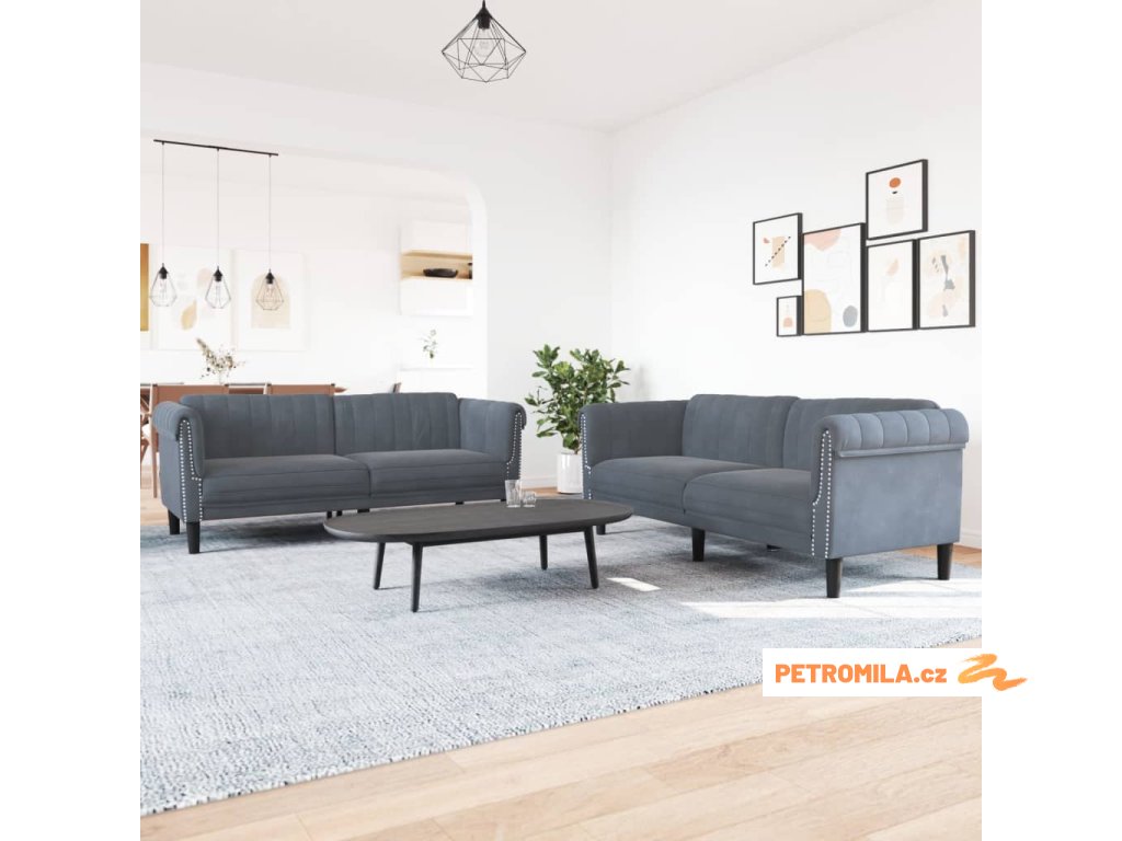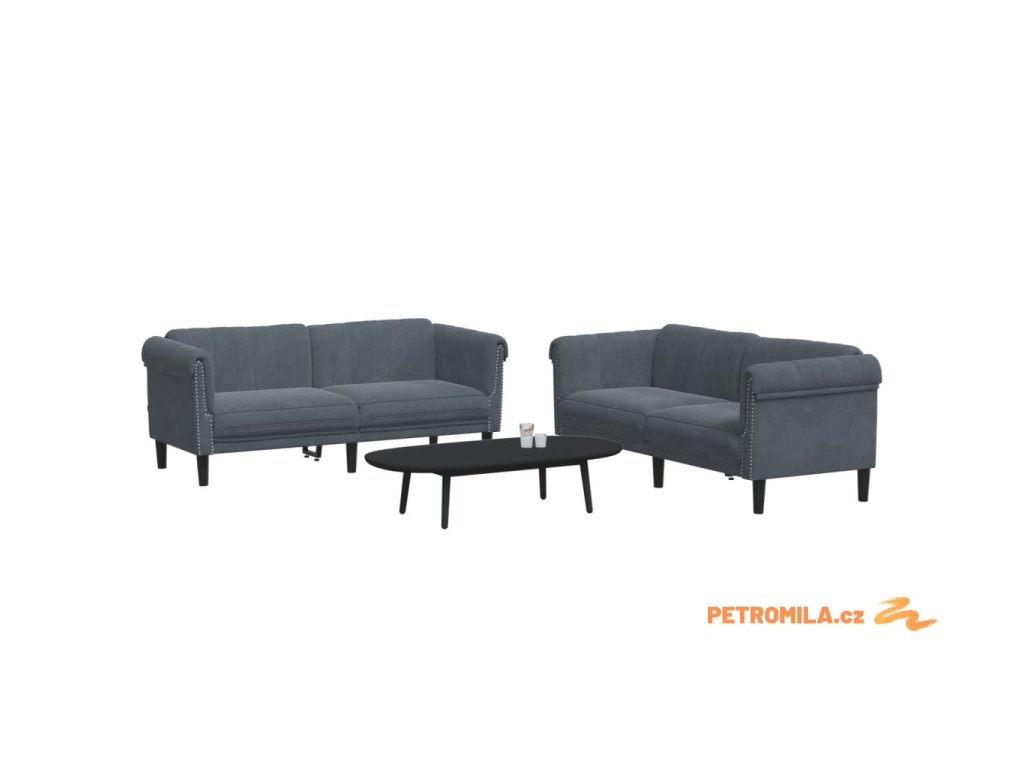 2dílná sedací souprava tmavě šedá samet
