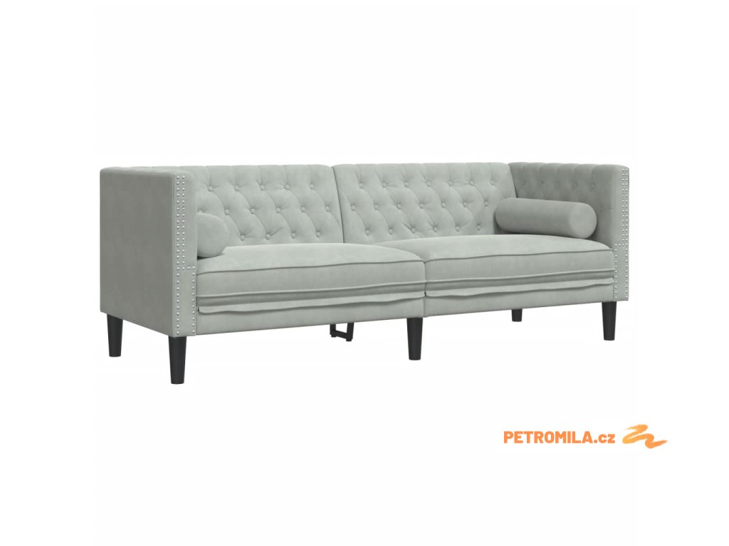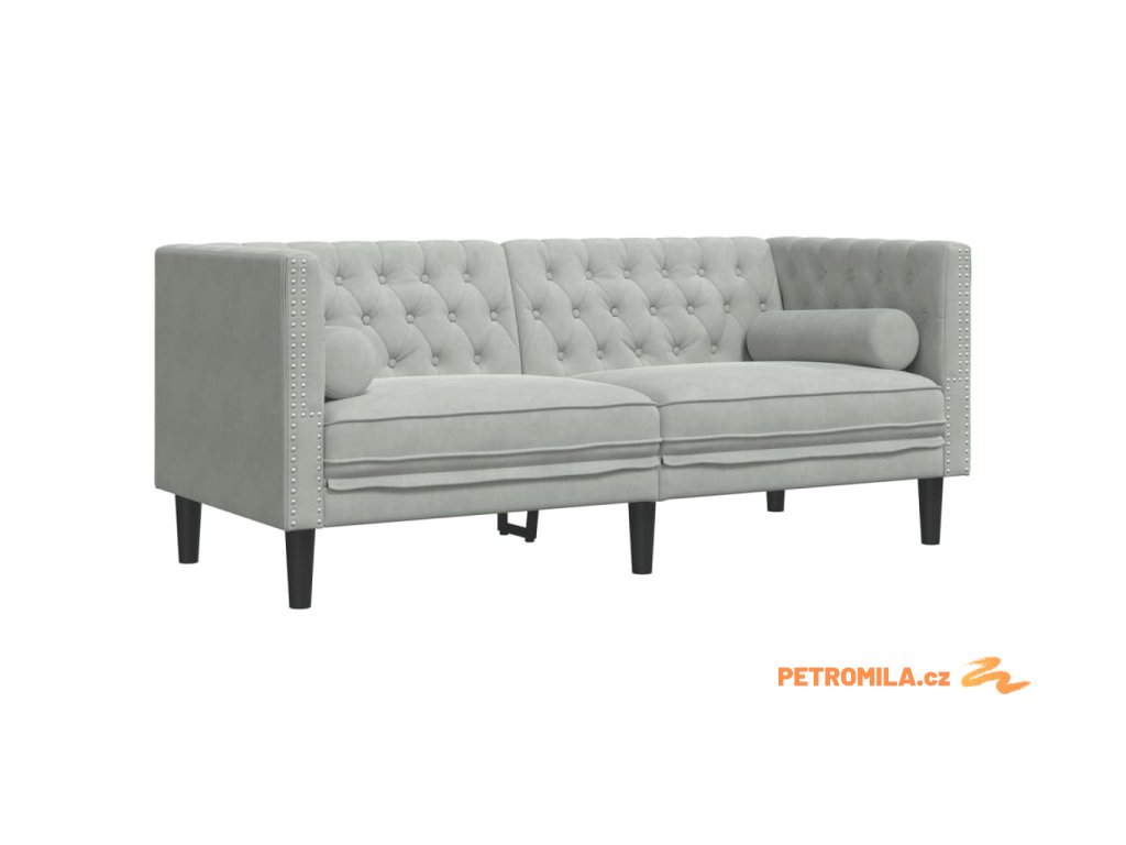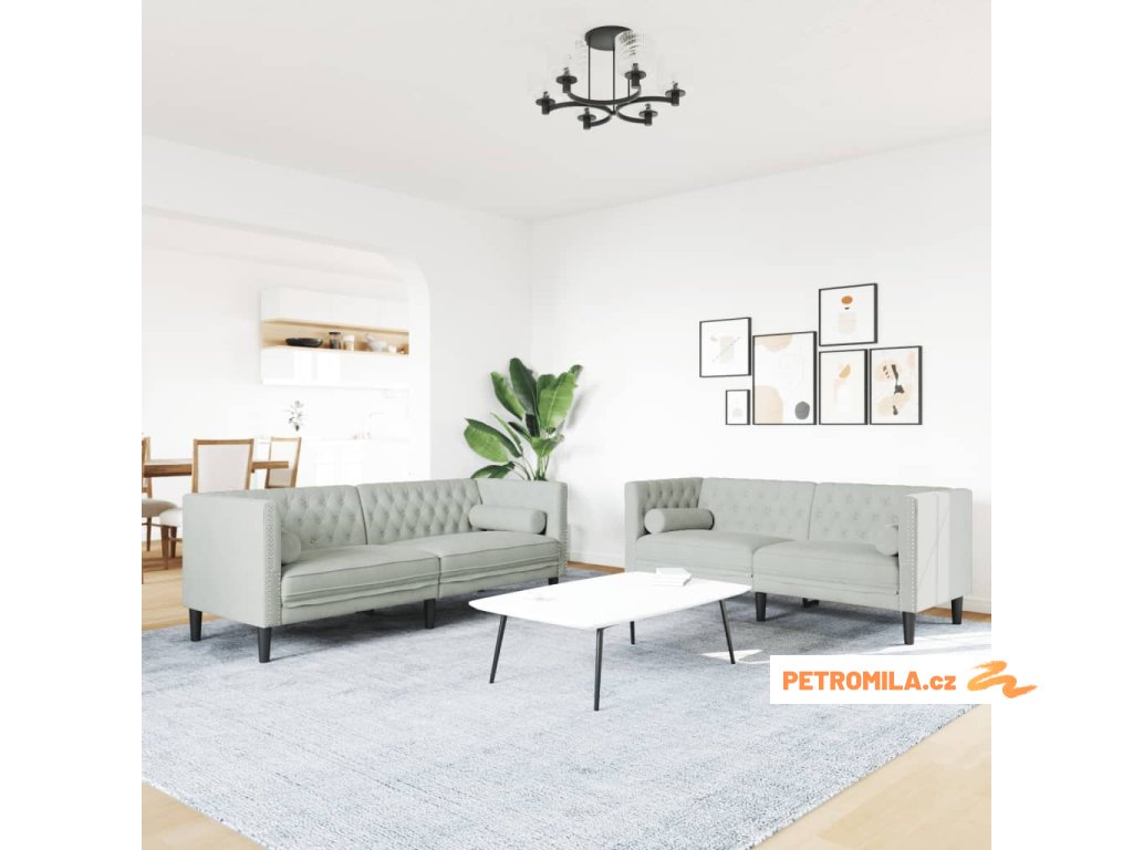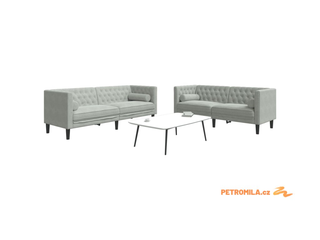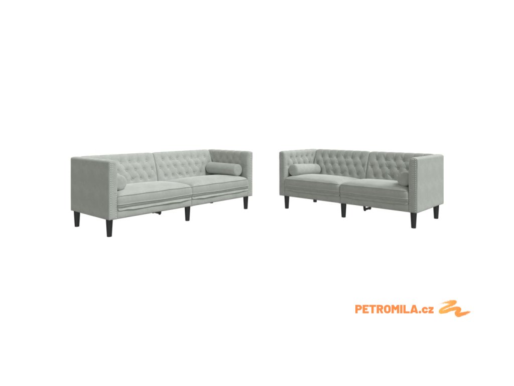 2dílná sedačka Chesterfield s podhlavníky světle šedá samet