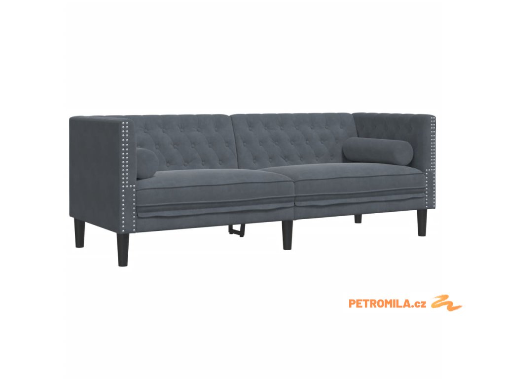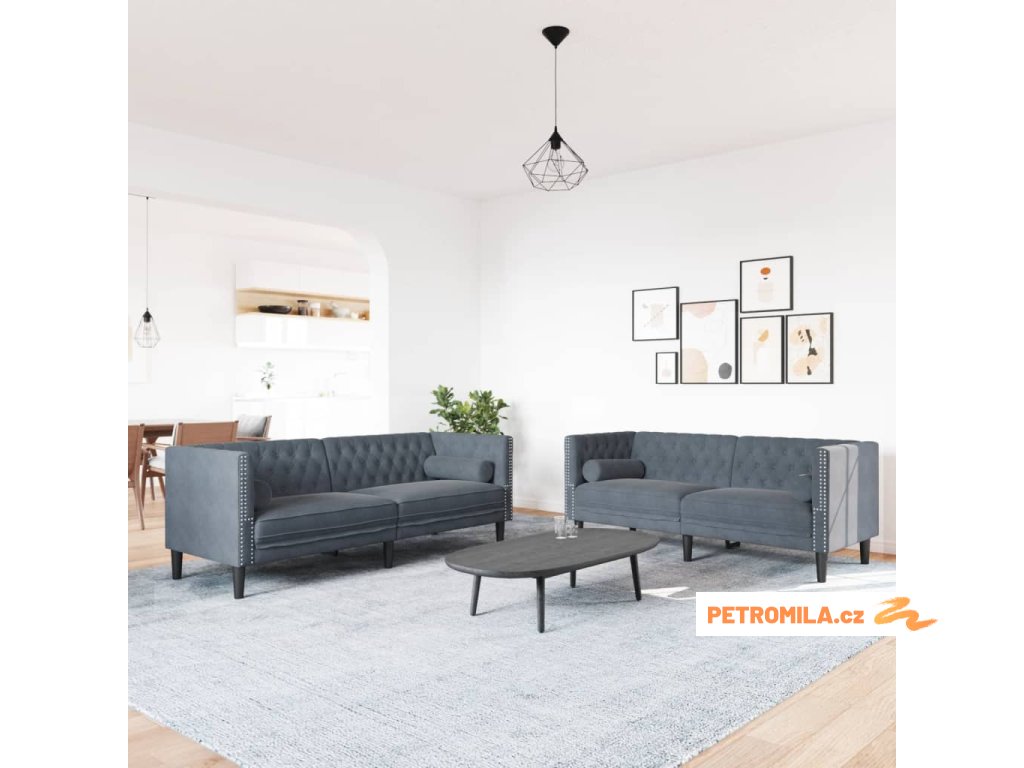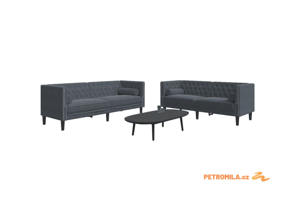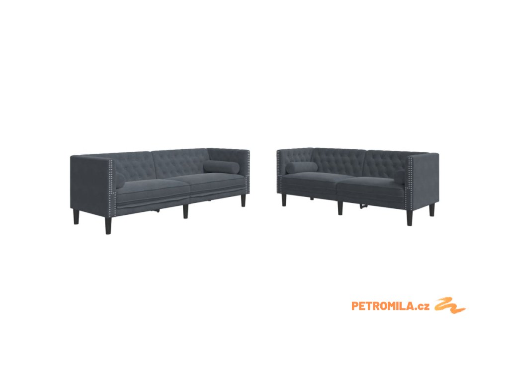 2dílná sedačka Chesterfield s podhlavníky tmavě šedá samet