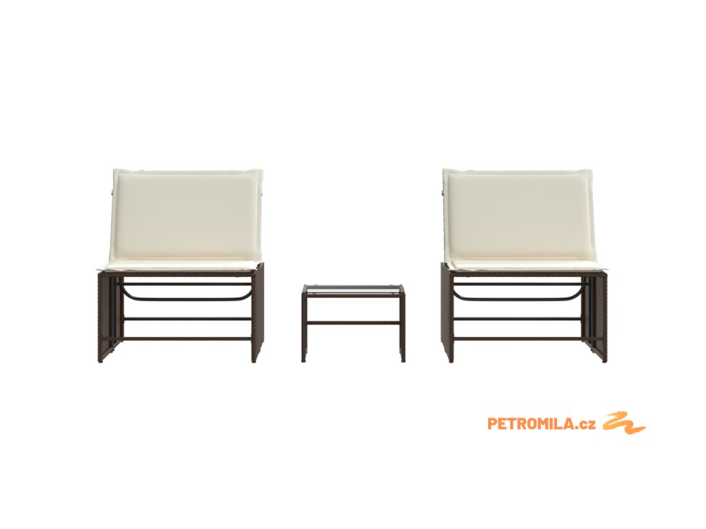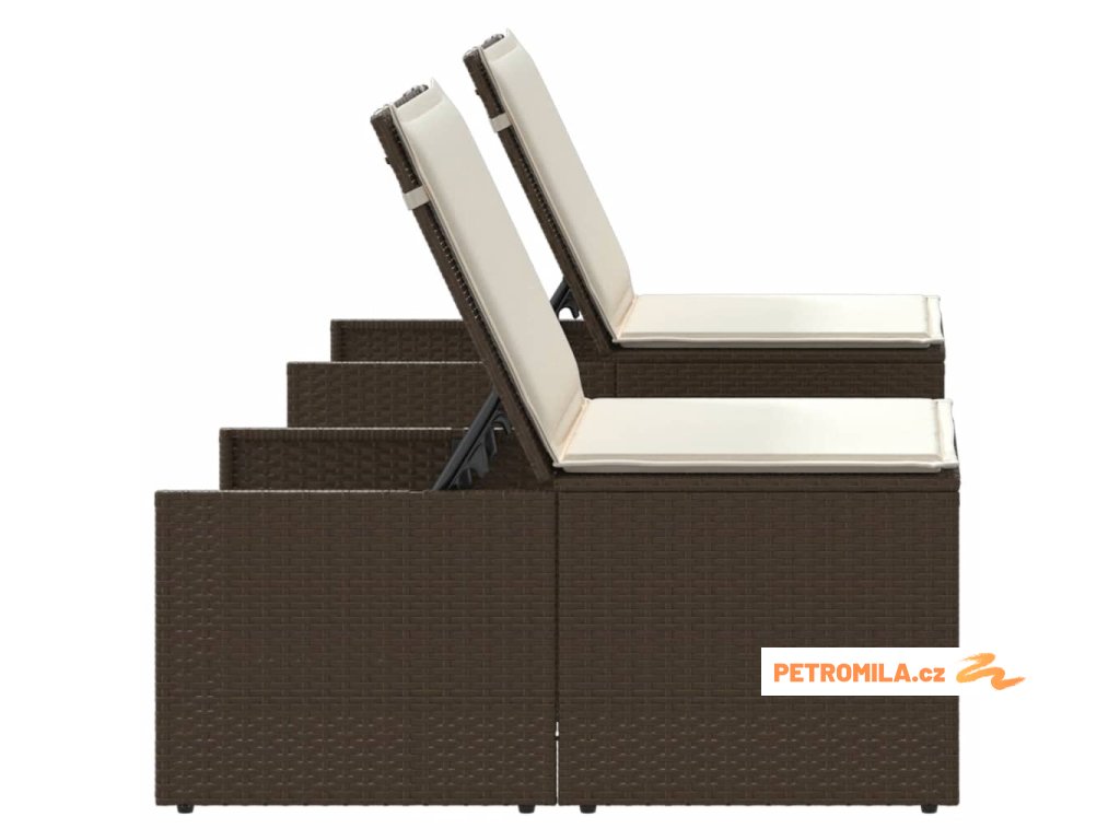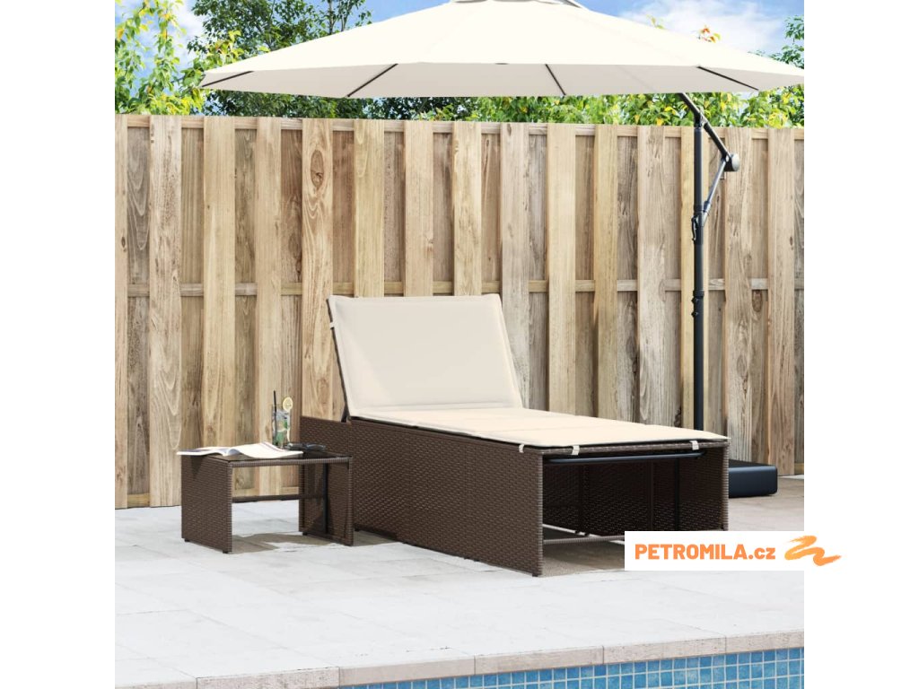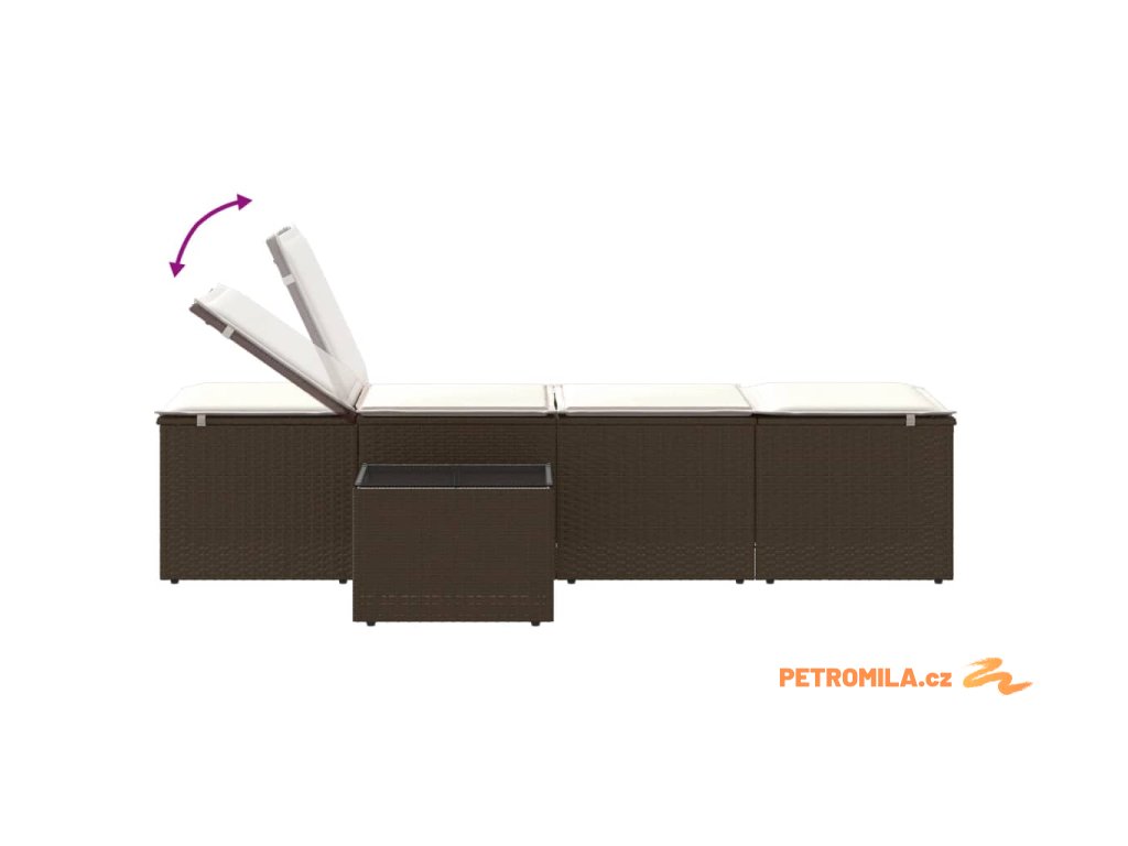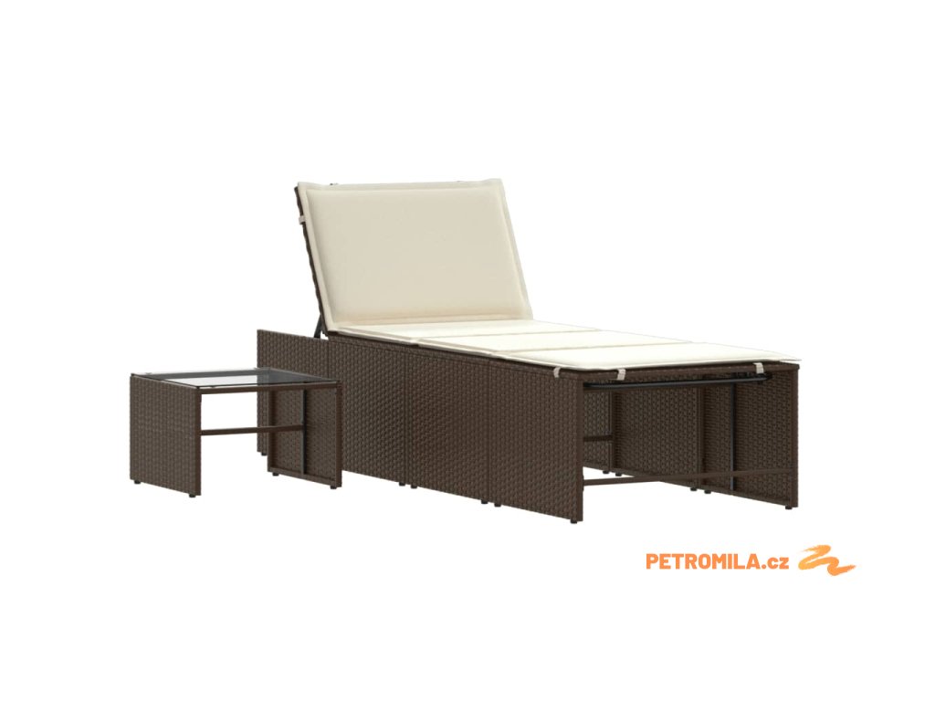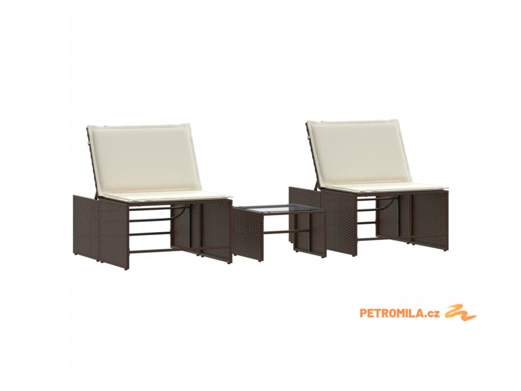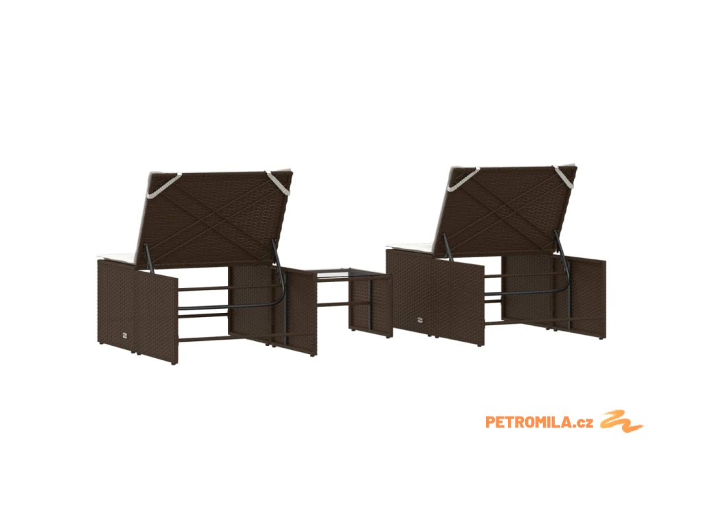 2dílná zahradní lehátka se stolkem hnědá polyratan