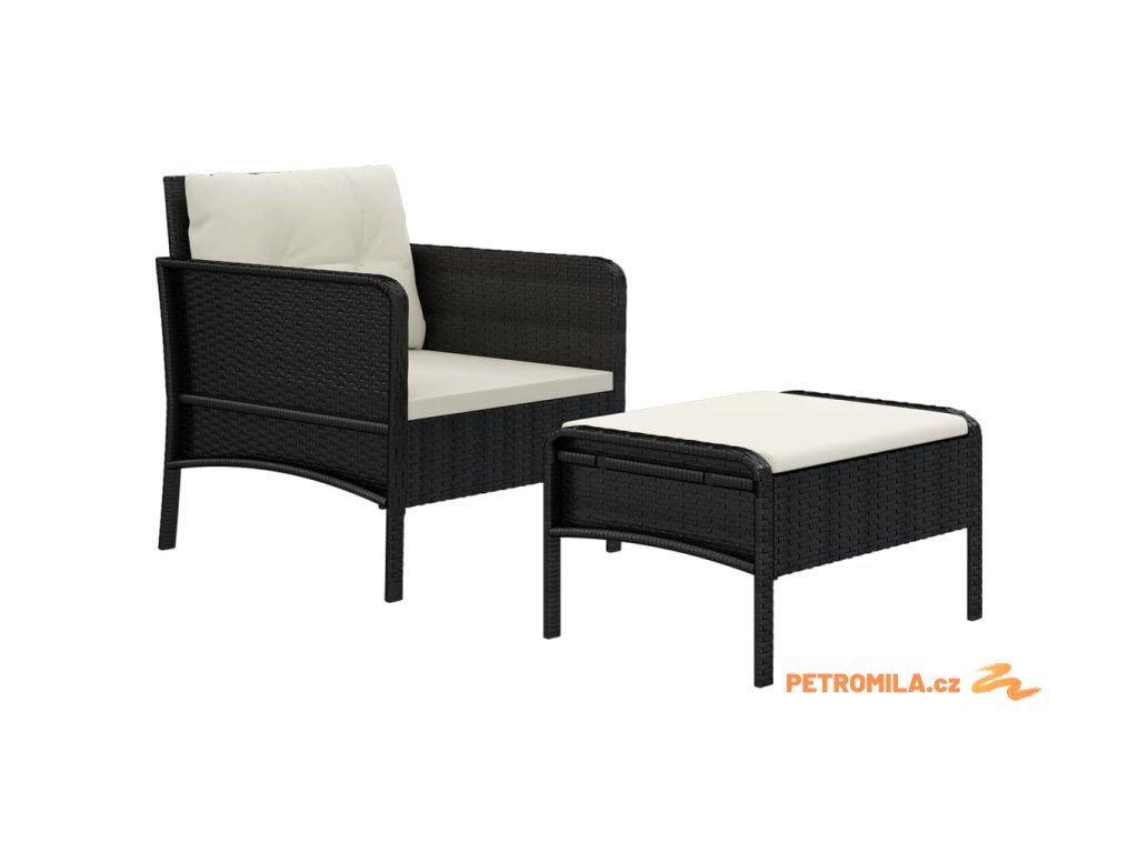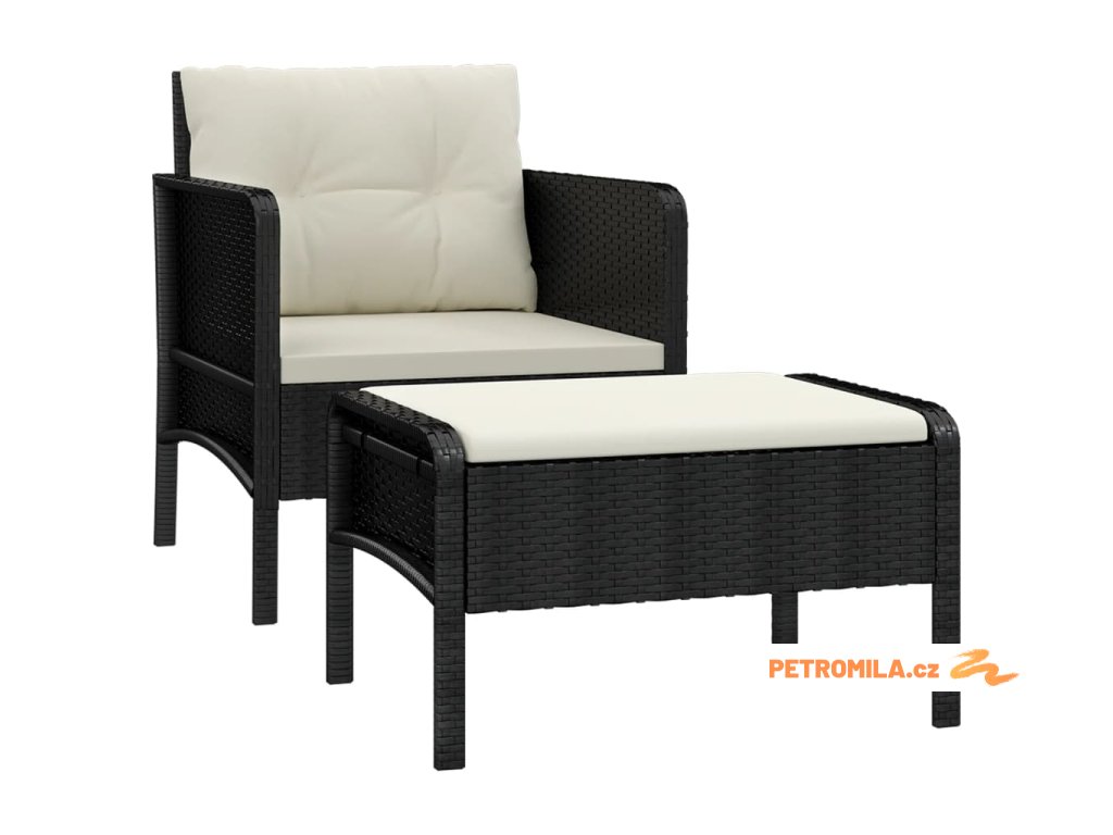 2dílná zahradní sedací souprava s poduškami černá polyratan