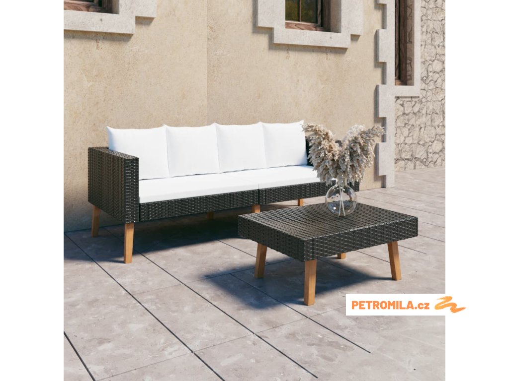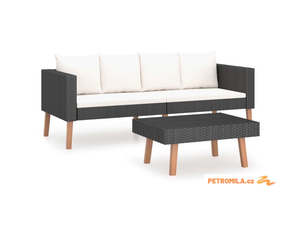 2dílná zahradní sedací souprava s poduškami polyratan černá