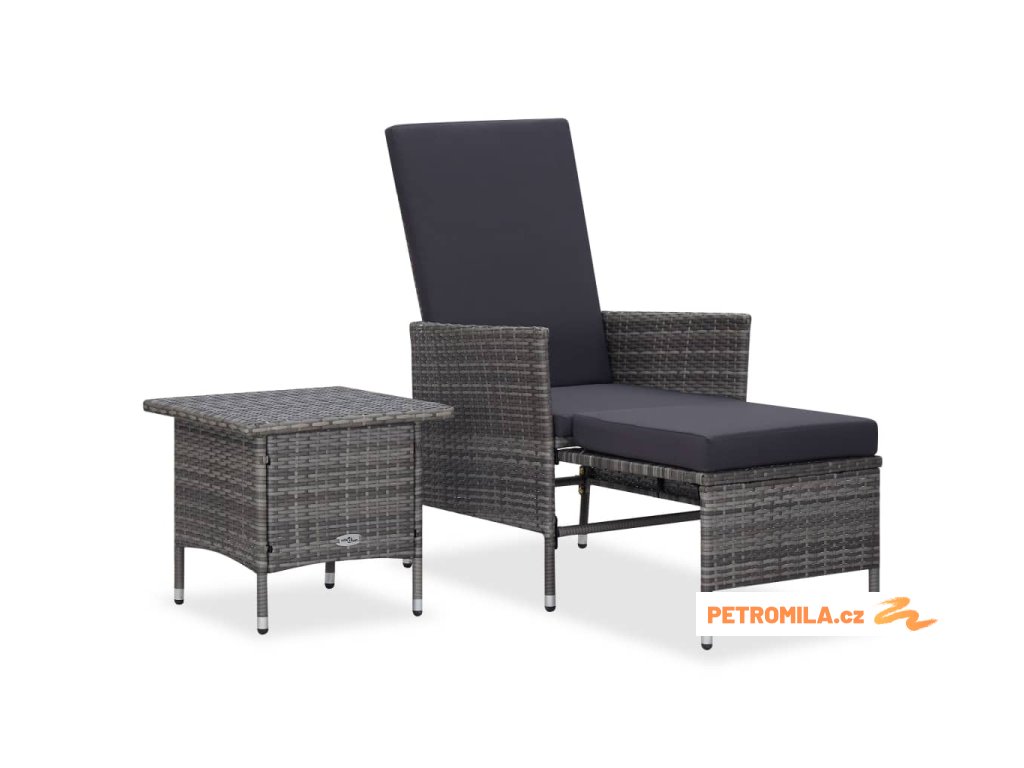 Křeslo a čajový stolek z PE ratanu jsou odolné, snadno se čistí a jsou vhodné pro každodenní venkovní použití. Tato sada zahradního nábytku je zpevněná práškově lakovaným ocelovým rámem, je robustní a stabilní a bude vám sloužit po dlouhé roky. Silně polstrované podušky poskytují pohodlné posezení. Můžete se usadit, a budete-li si to přát, natáhnout si nohy na zabudovanou podnožku pro ještě více komfortu. Stolek, který je součástí setu, je ideální pro všechny věci, co potřebujete mít po ruce, ať už je to mísa s ovocem, nápoje, občerstvení anebo různé dekorace.
