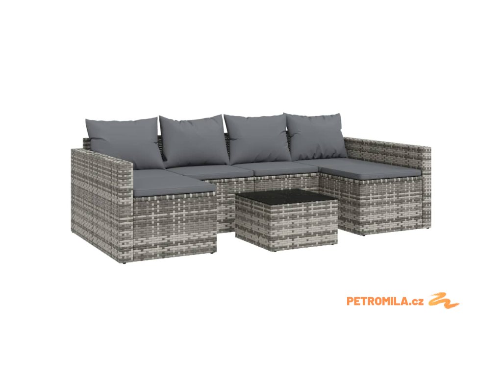 Zahradní jídelní souprava s polštářem 7 pcs Šedá Poly ratan
