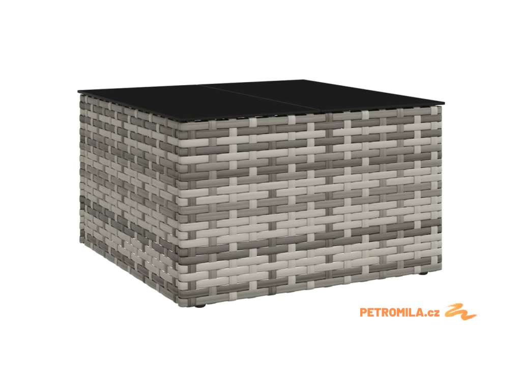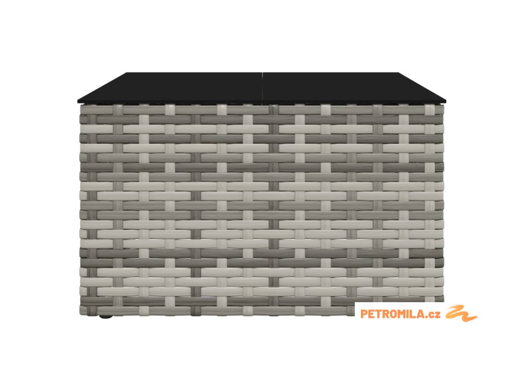- Materiál: PE ratan, práškově lakovaná ocel, tvrzené sklo