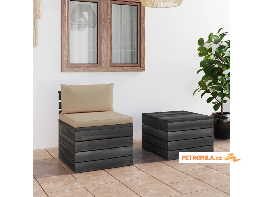 2dílná zahradní sedací souprava z palet + podušky borové dřevo