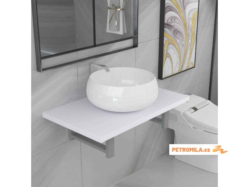 Koupelnová nástěnná police z pevného materiálu je výjimečně stabilní a odolná a perfektně doplňuje keramické umyvadlo. Toto keramické umyvadlo s vysoce lesklou povrchovou úpravou se snadno čistí vlhkým hadříkem. Polici můžete snadno upevnit ke zdi, potřebné držáky a montážní materiály jsou součástí balení.