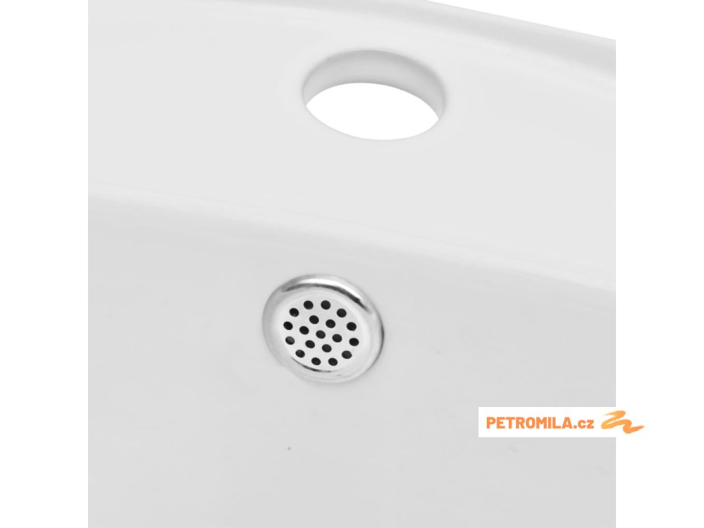 Naše praktické a nadčasové oválné umyvadlo s nástěnnou policí bude stylovým doplňkem do jakékoli koupelny, umývárny nebo toalety.