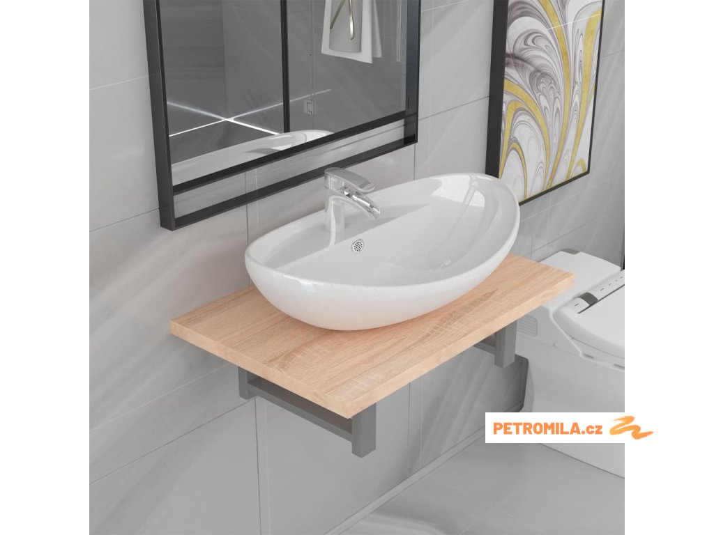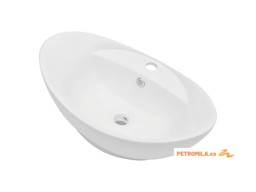 Naše praktické a nadčasové oválné umyvadlo s nástěnnou policí bude stylovým doplňkem do jakékoli koupelny, umývárny nebo toalety.