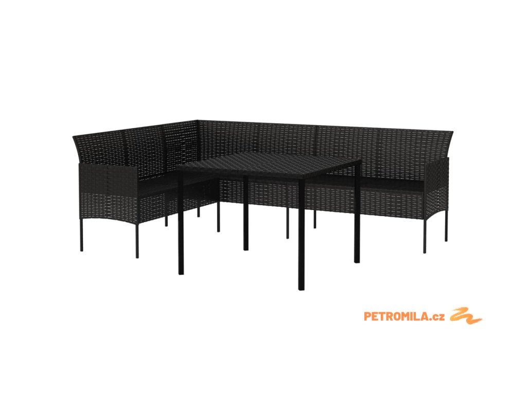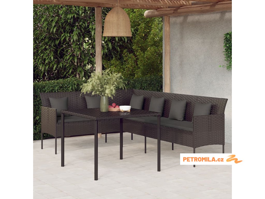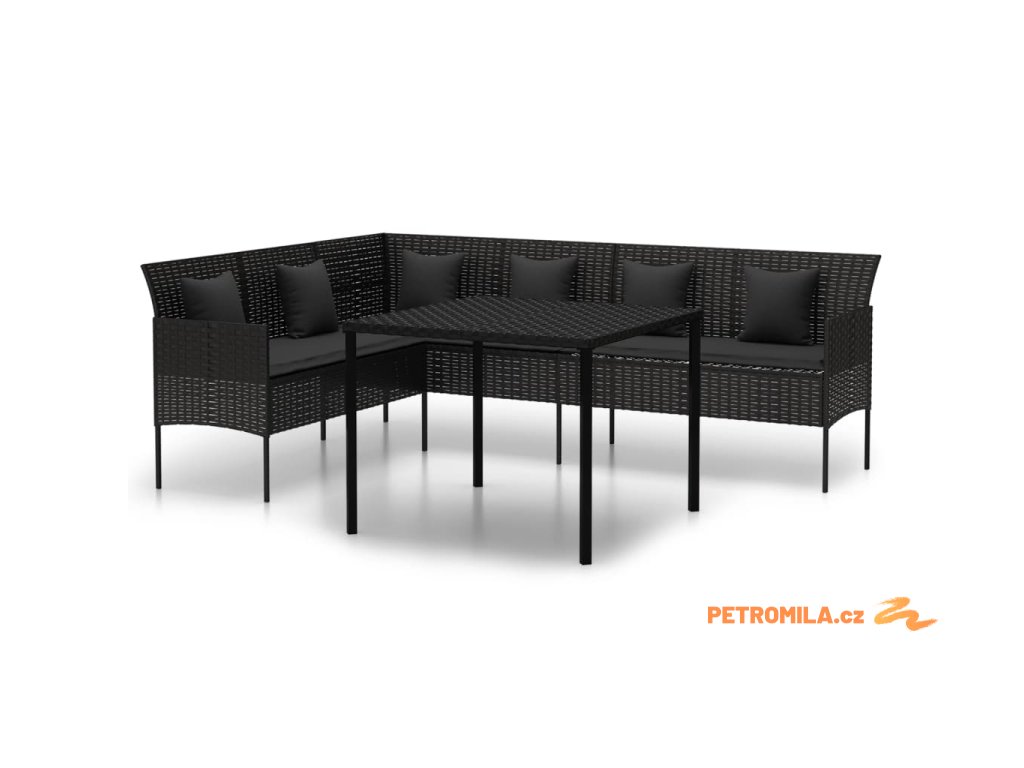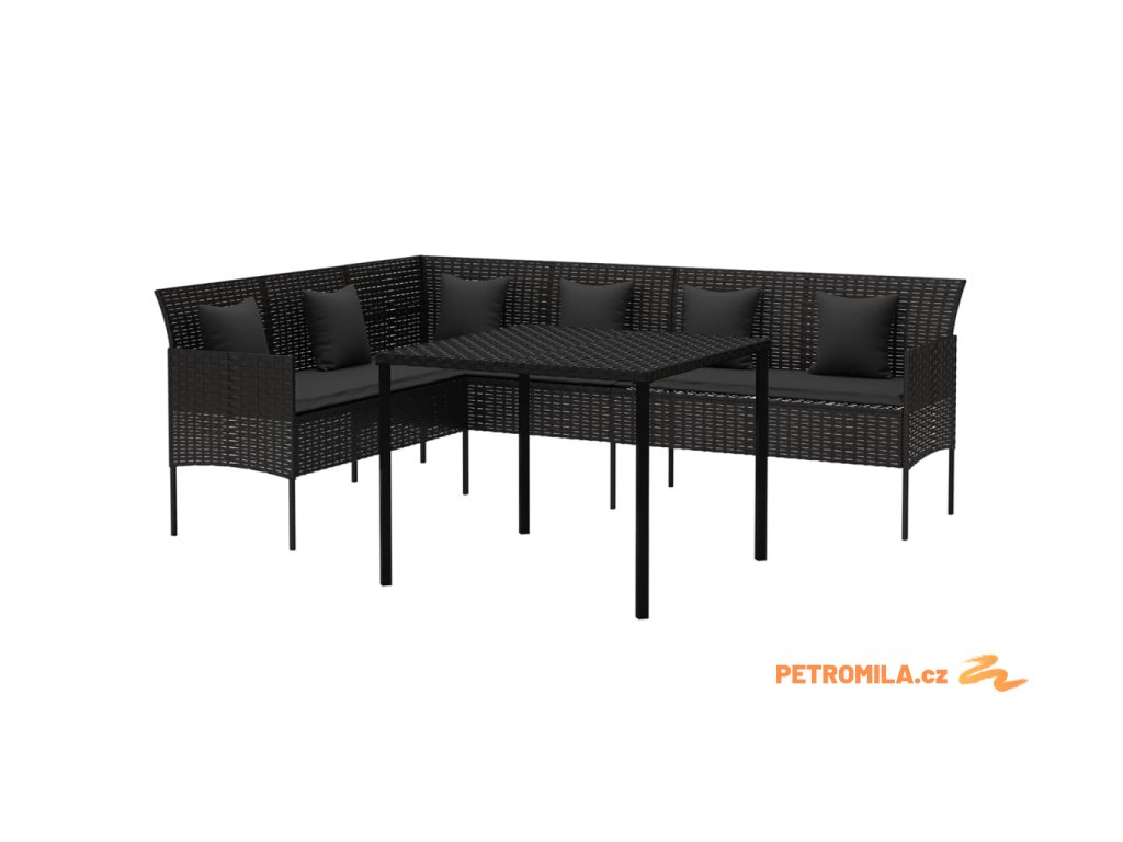2dílný zahradní jídelní set s poduškami černý polyratan