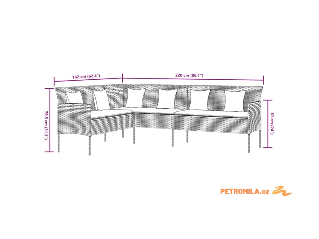 - Rozměry: 220 x 162 x 79,5 cm (Š x H x V)