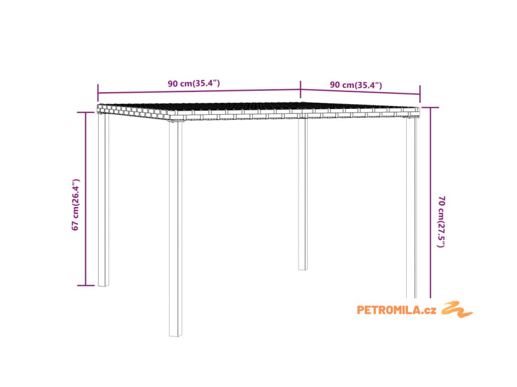 - Rozměry: 90 x 90 x 70 cm (Š x H x V)