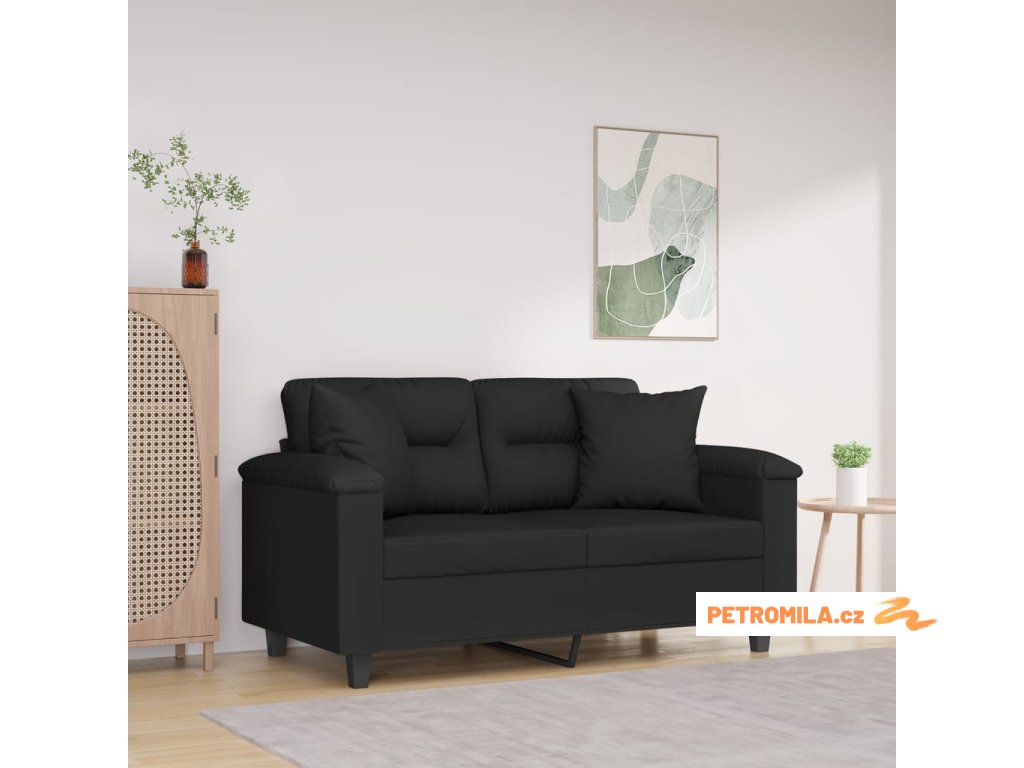 2místná pohovka s polštáři černá 120 cm tkanina z mikrovlákna