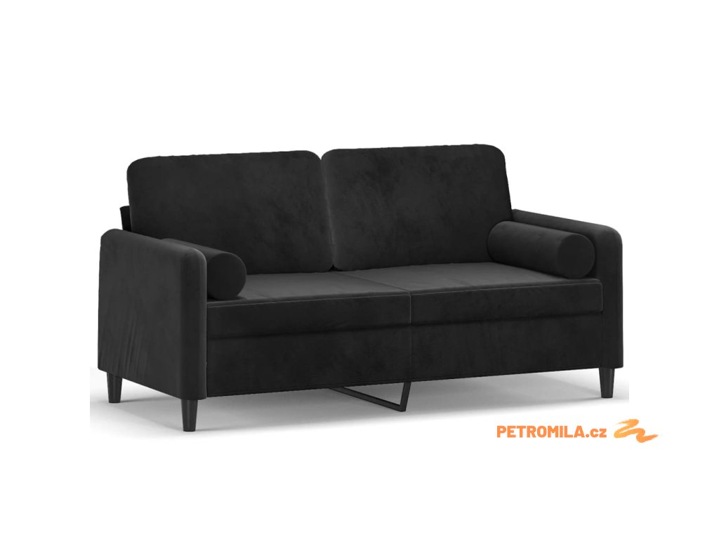 2místná pohovka s polštáři černá 140 cm samet