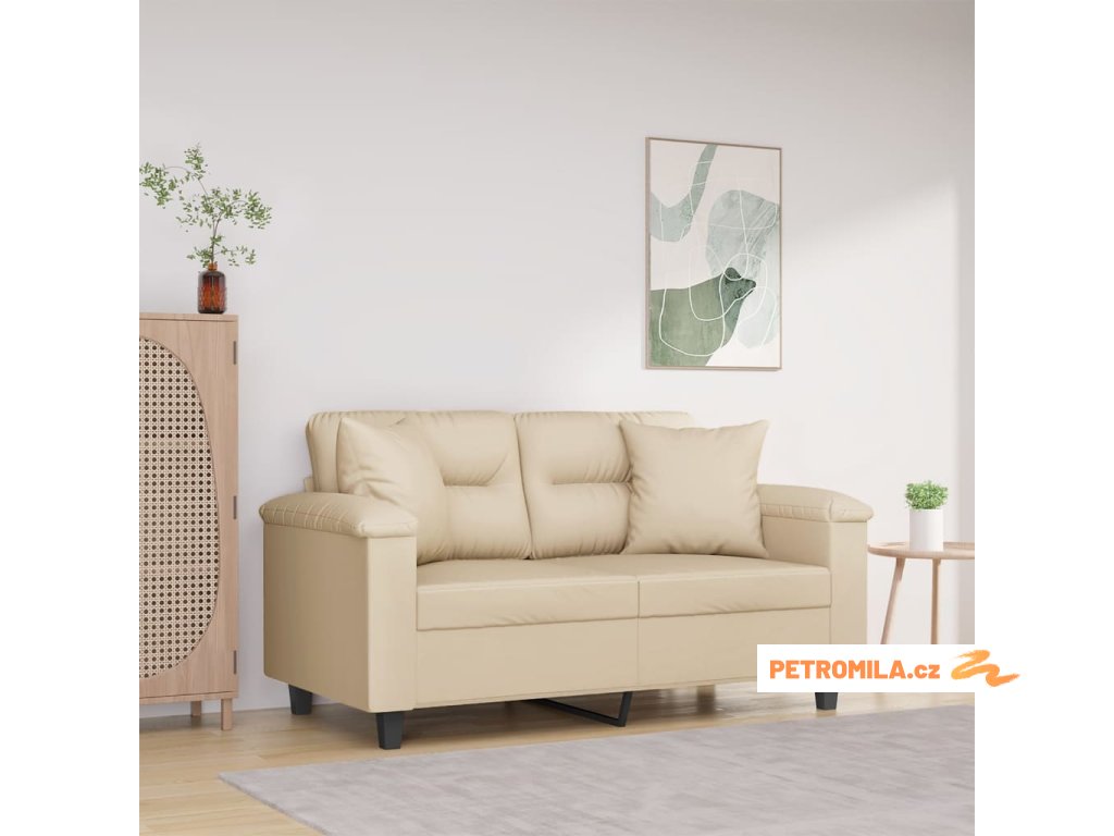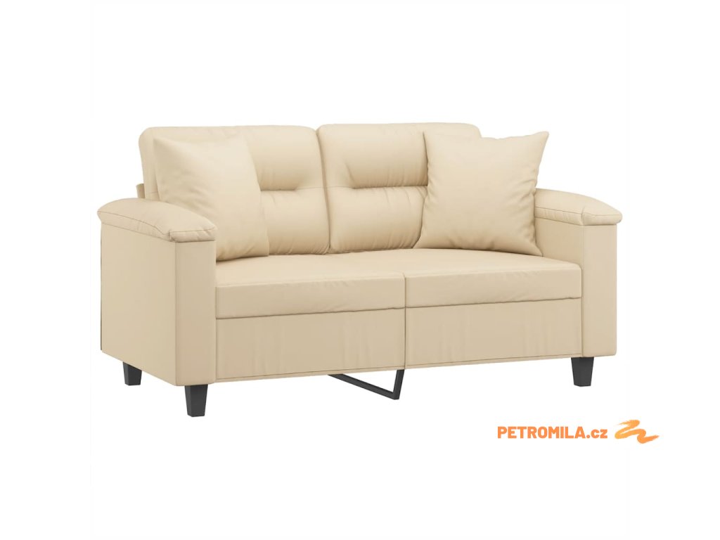 2místná pohovka s polštáři krémová 120 cm tkanina z mikrovlákna