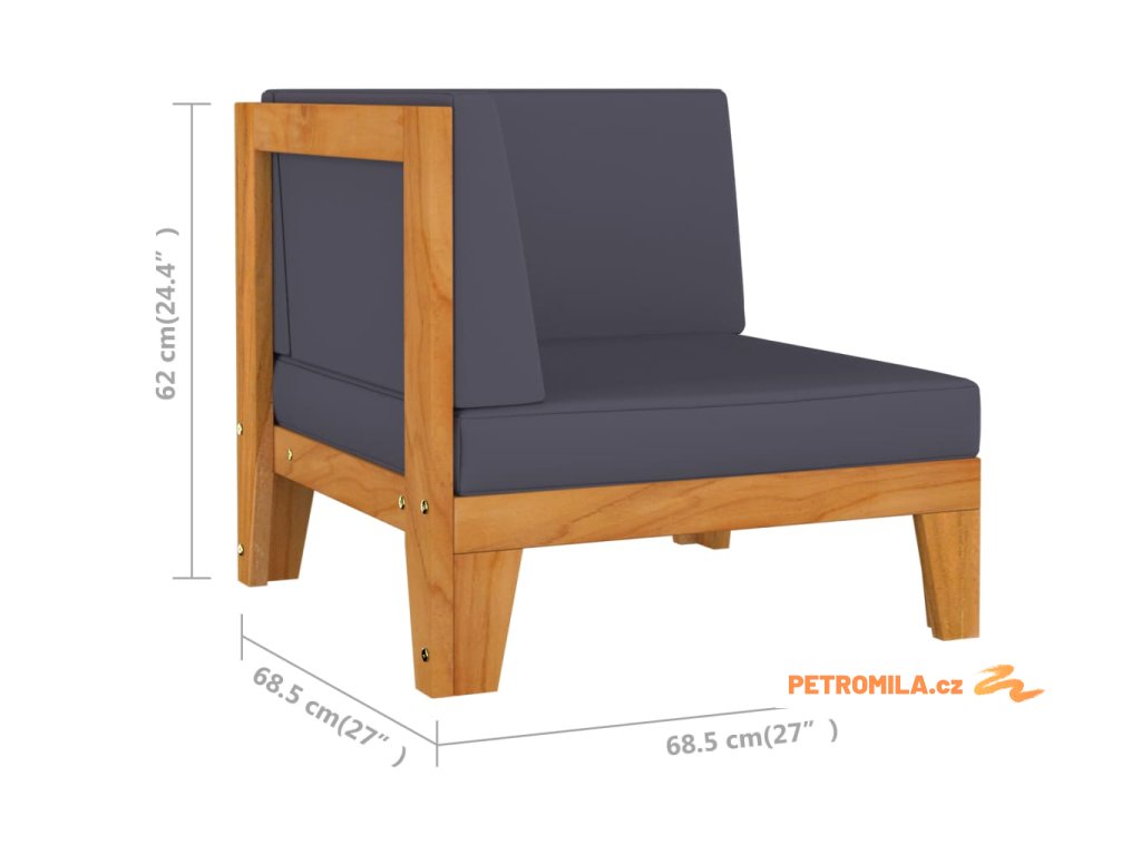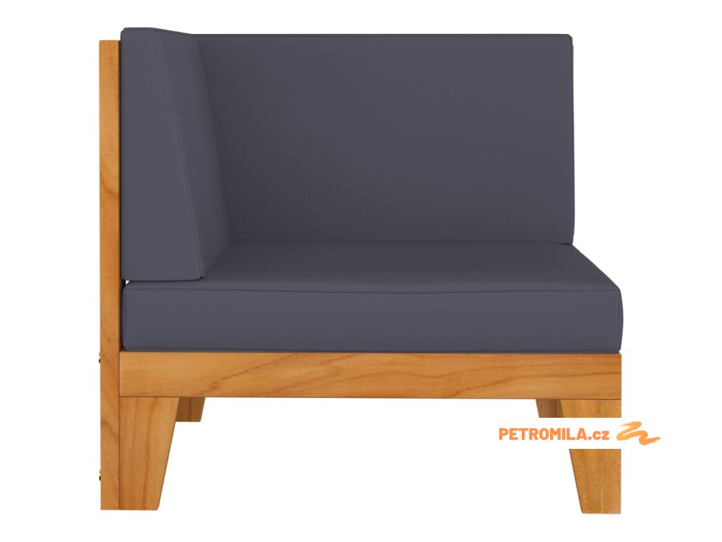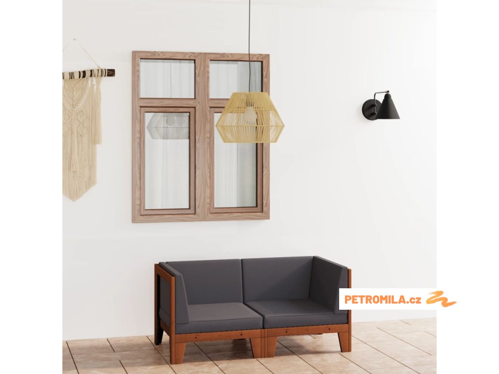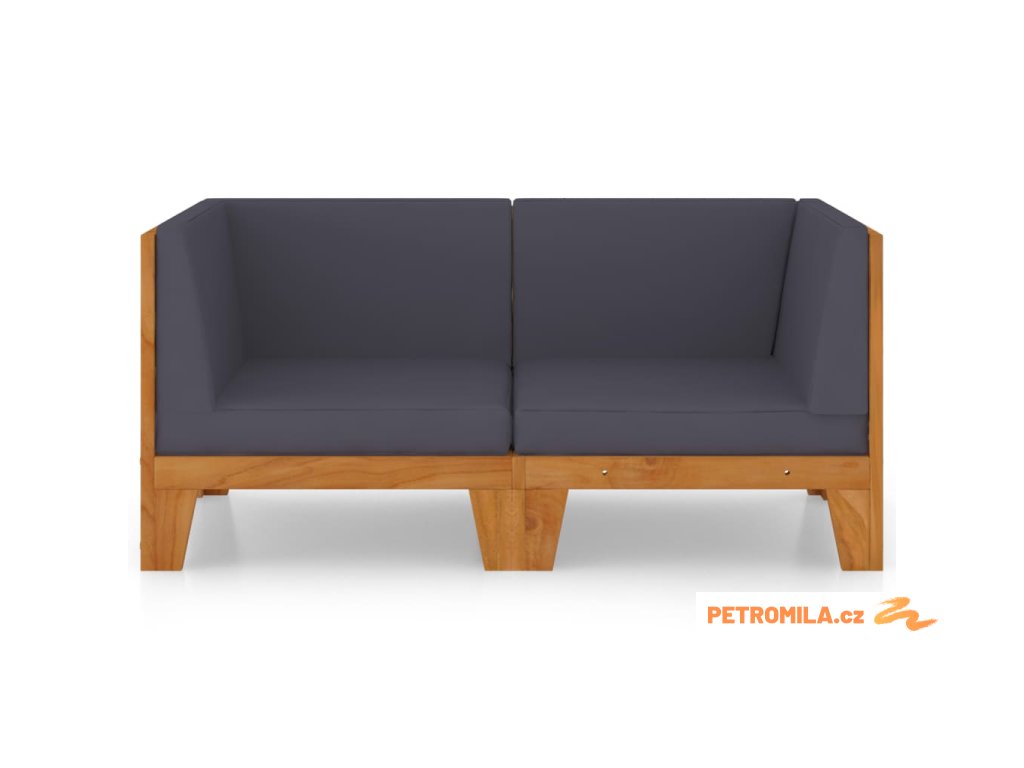 2místná pohovka s tmavě šedými poduškami masivní akácie