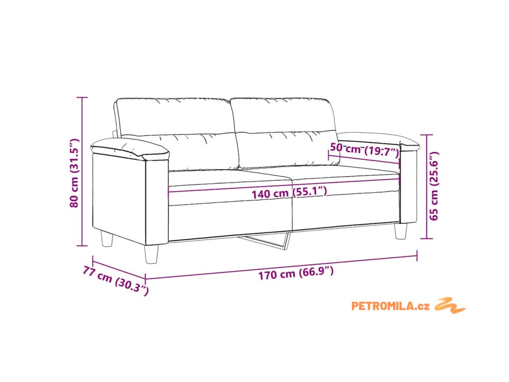 - Celkové rozměry: 170 x 77 x 80 cm (Š x H x V)