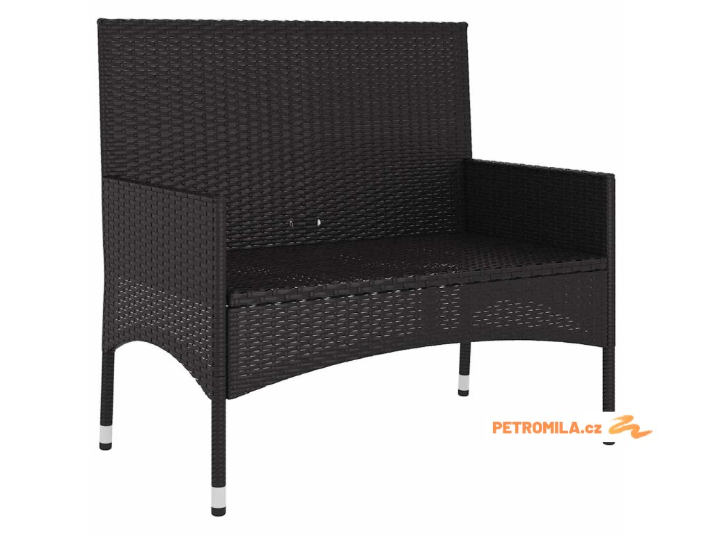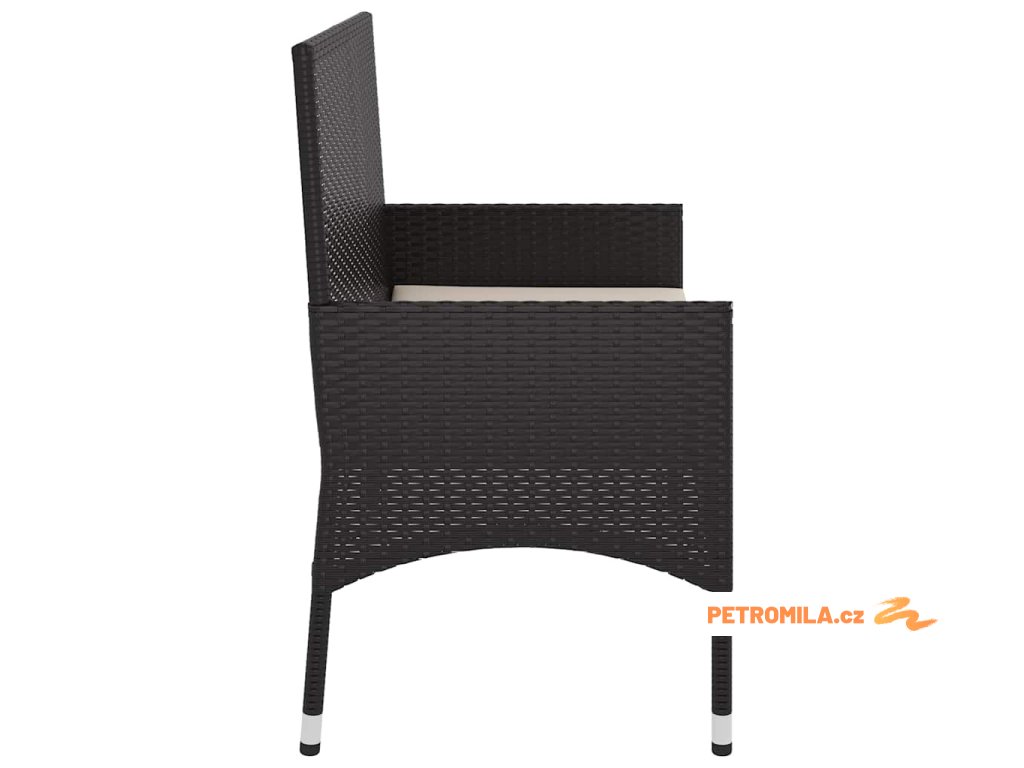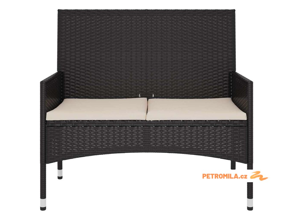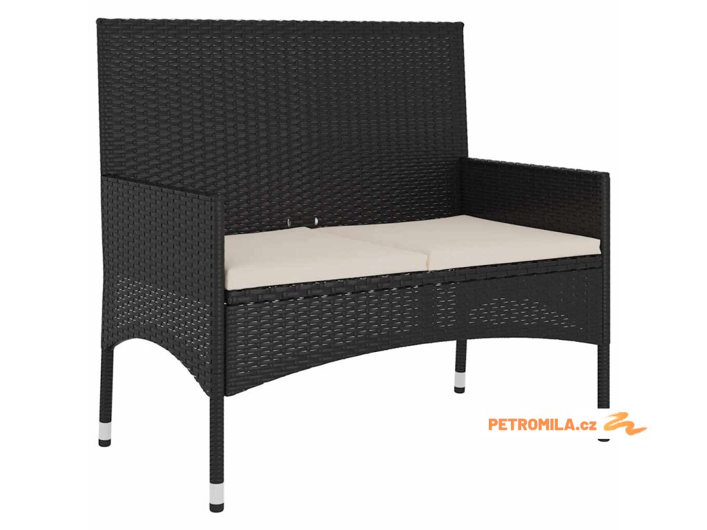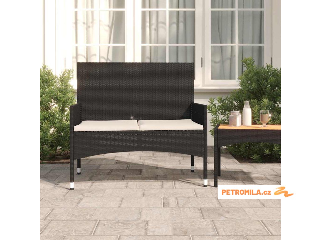 2místná zahradní lavice s poduškami černá polyratan
