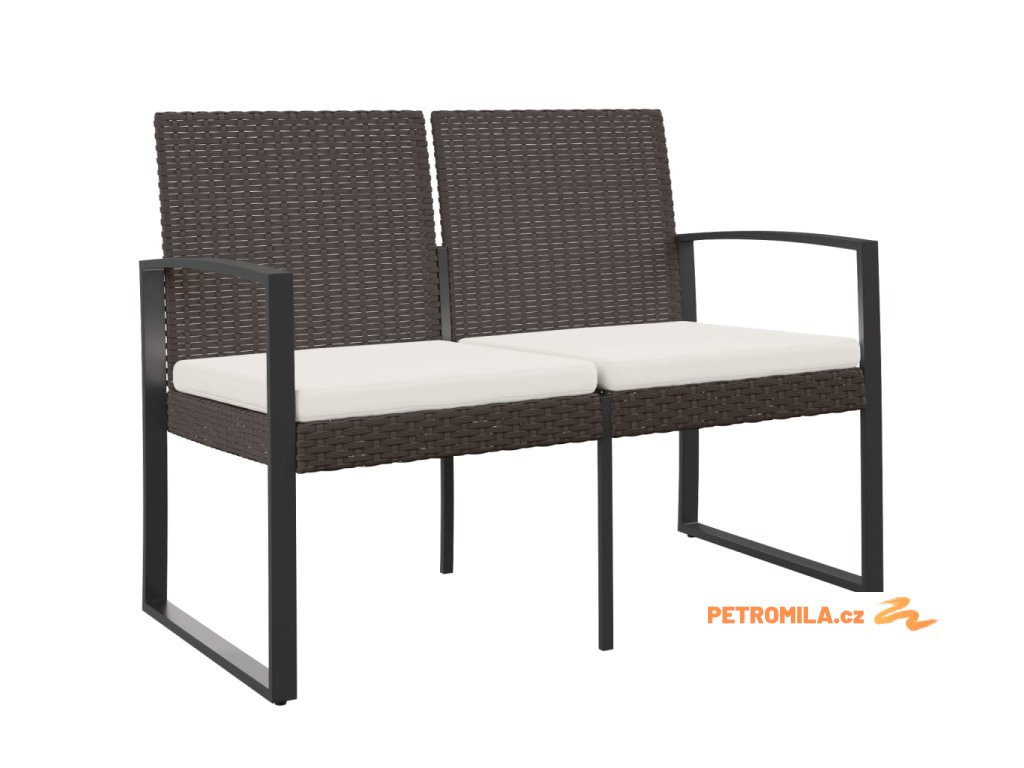 2místná zahradní lavice s poduškami hnědá PP ratan
