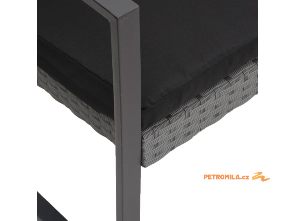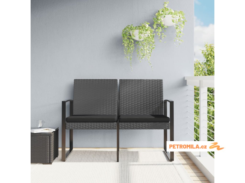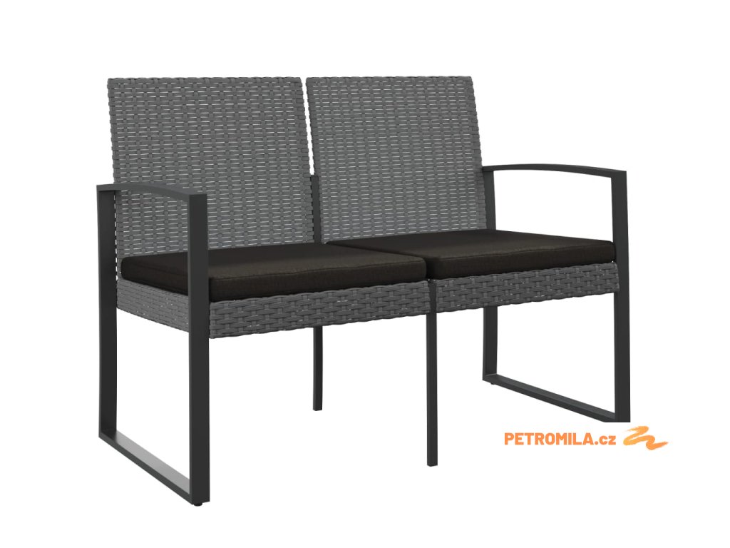 2místná zahradní lavice s poduškami tmavě šedá PP ratan
