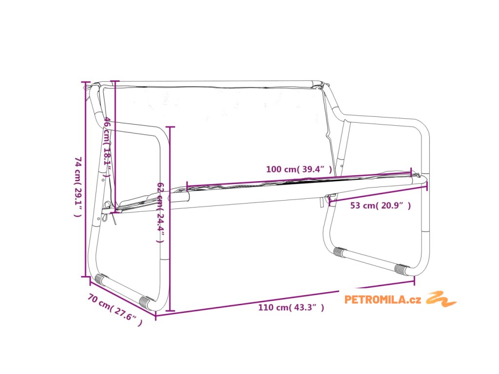 2místná zahradní lavice s poduškou antracitová ocel