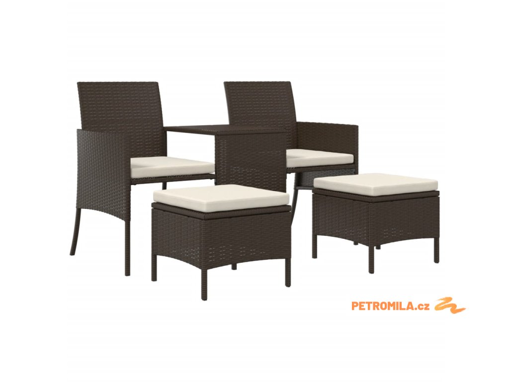 2místná zahradní pohovka se stolkem a otomany polyratan hnědá
