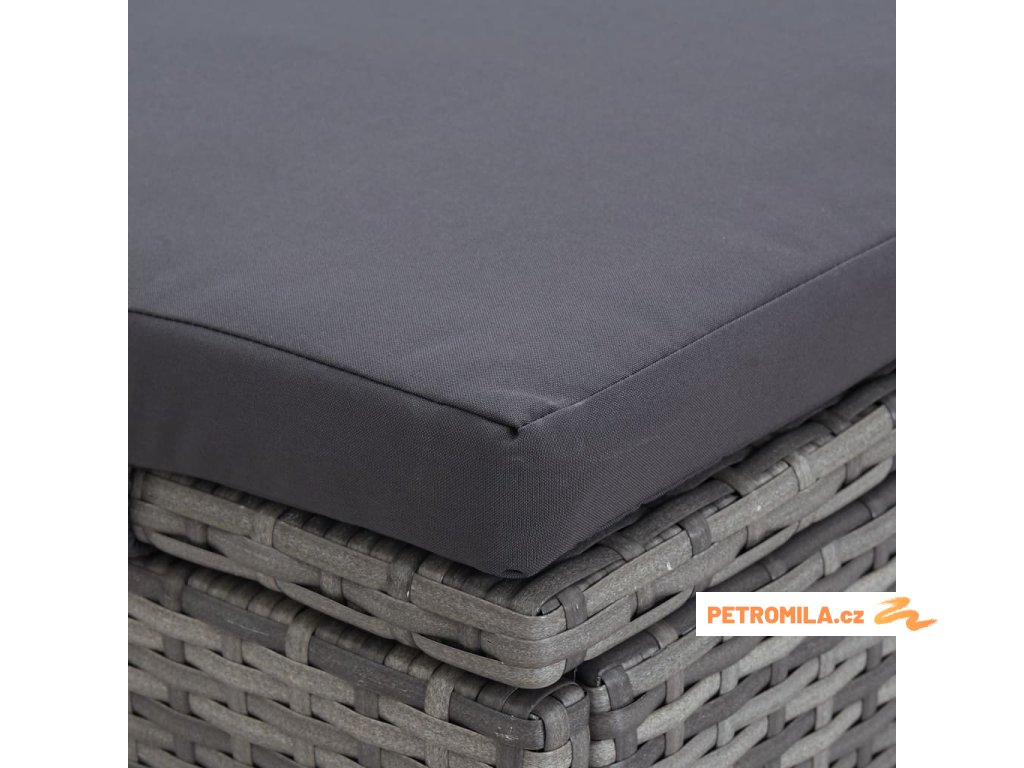 - Materiál: PE ratan, práškově lakovaná ocel, látka (100% polyester)