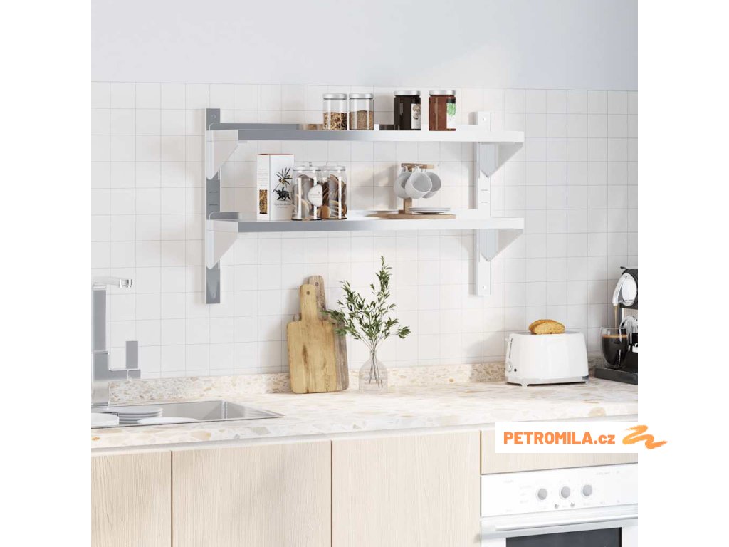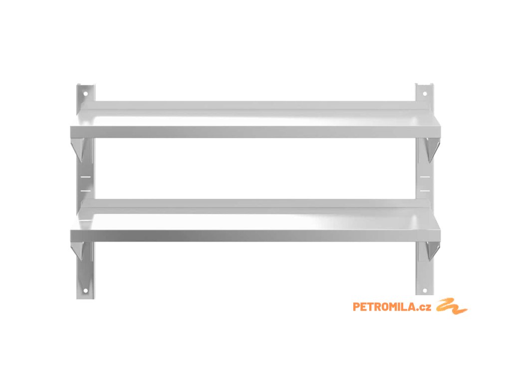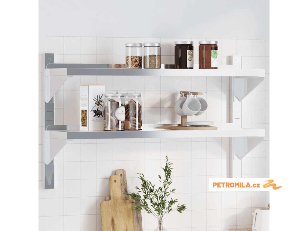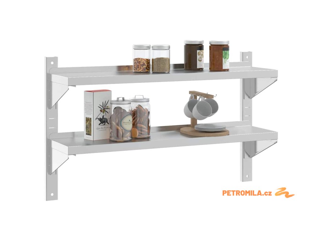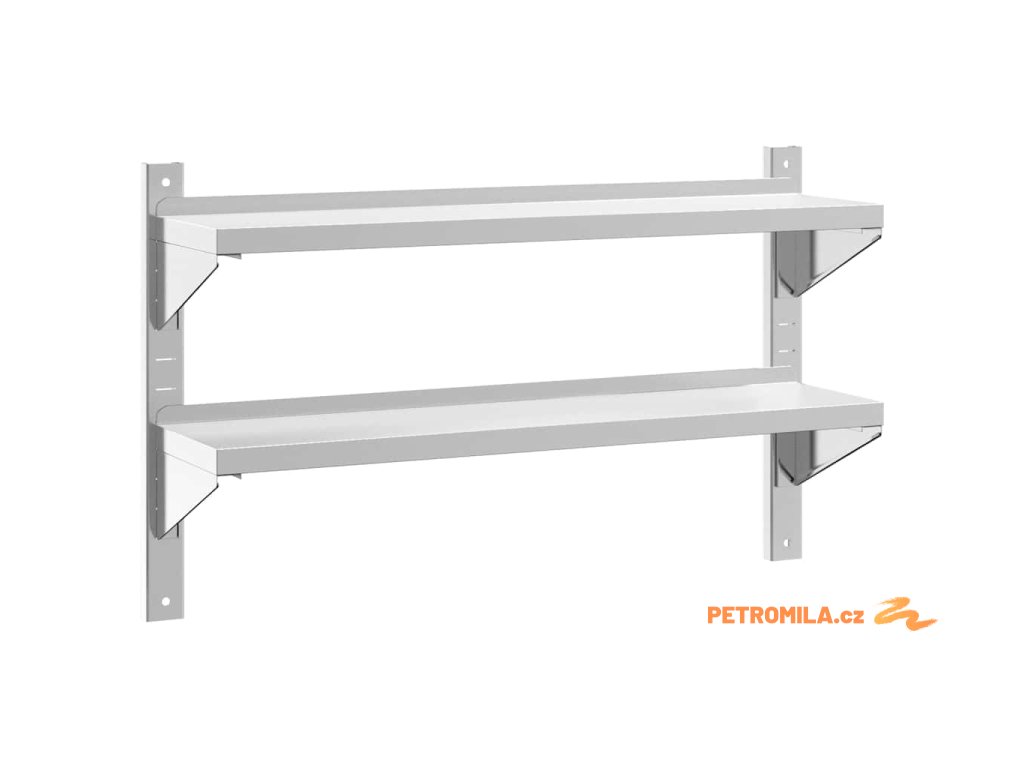 2patrová nástěnná police 100x23,5x60 cm stříbrná nerezová ocel