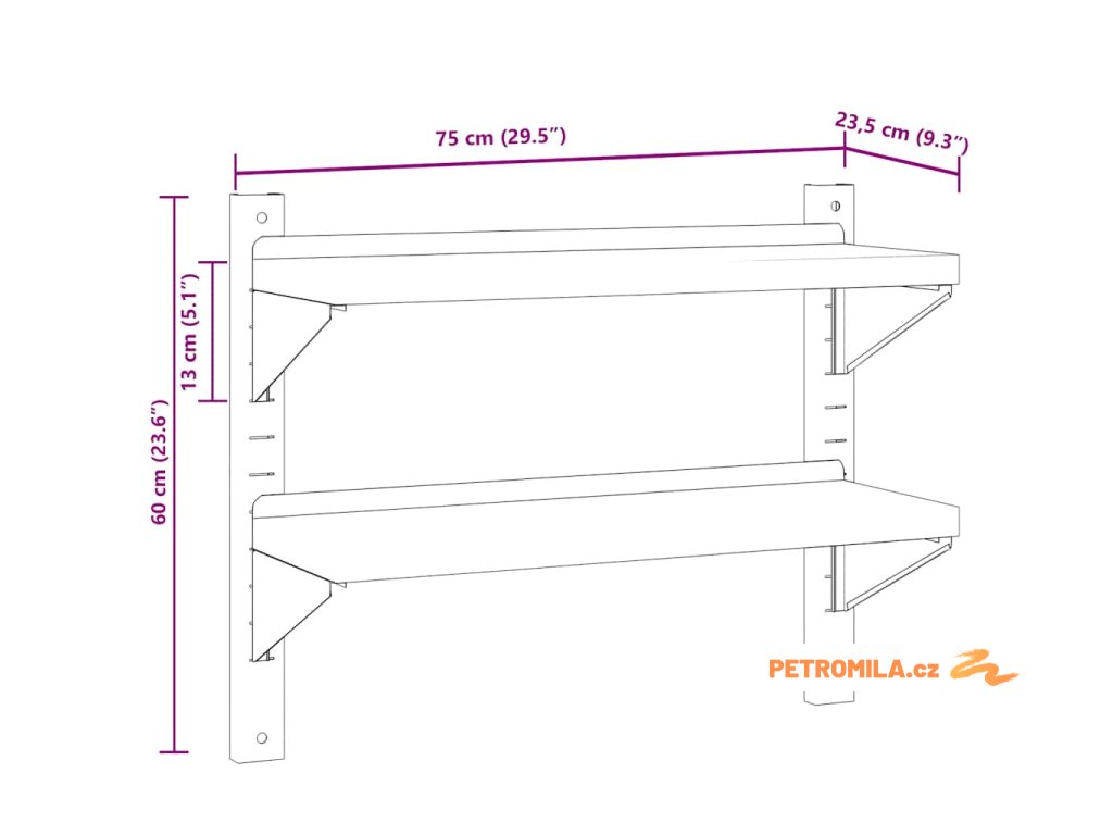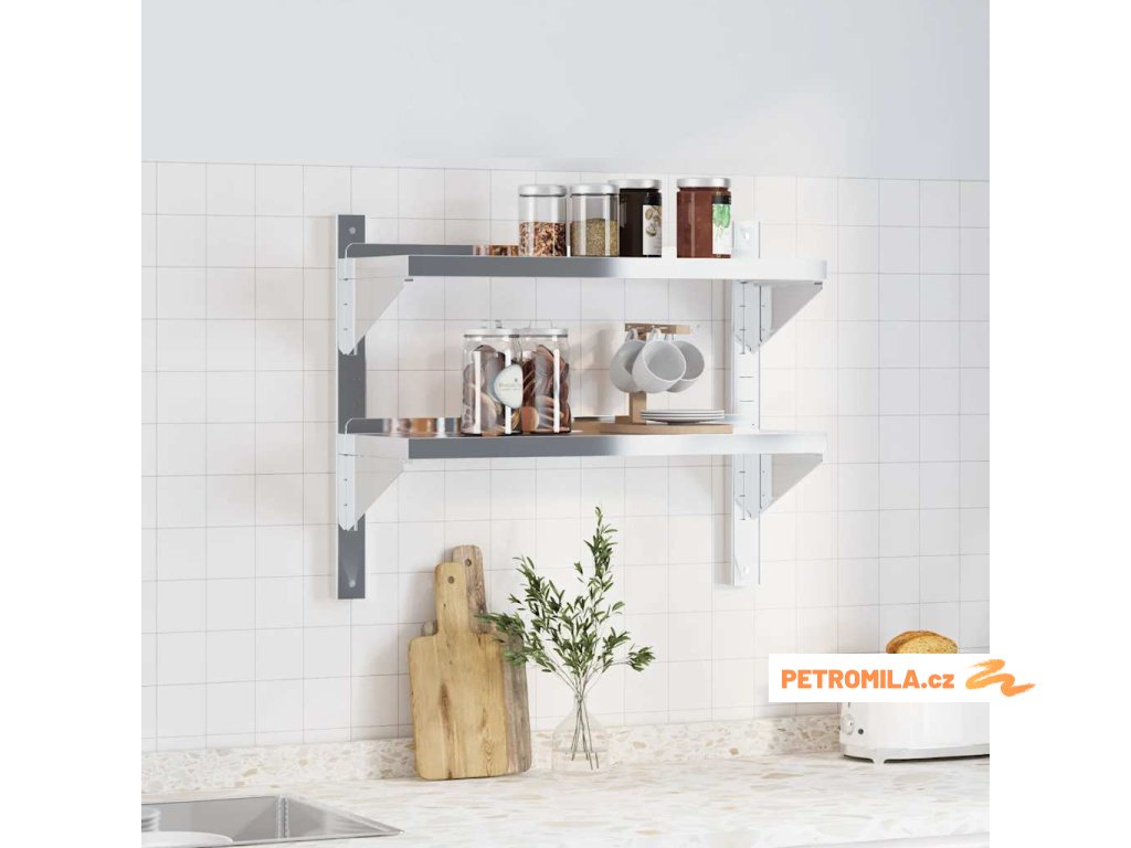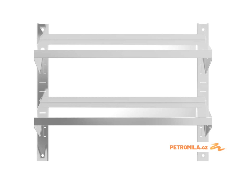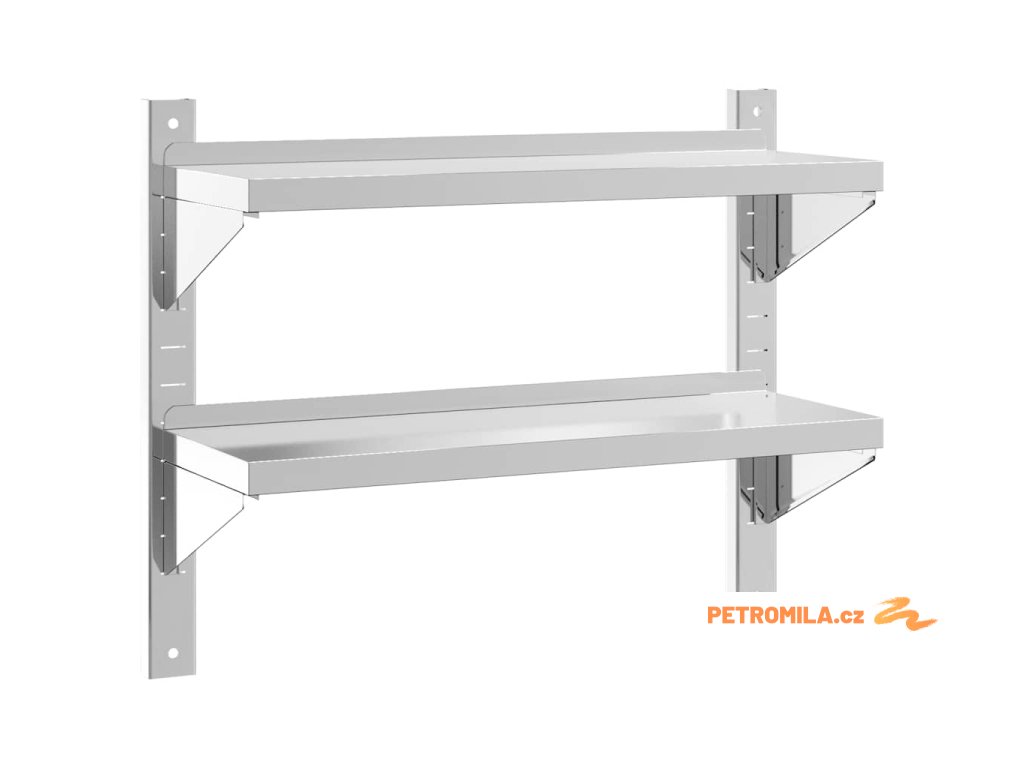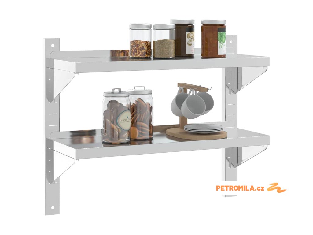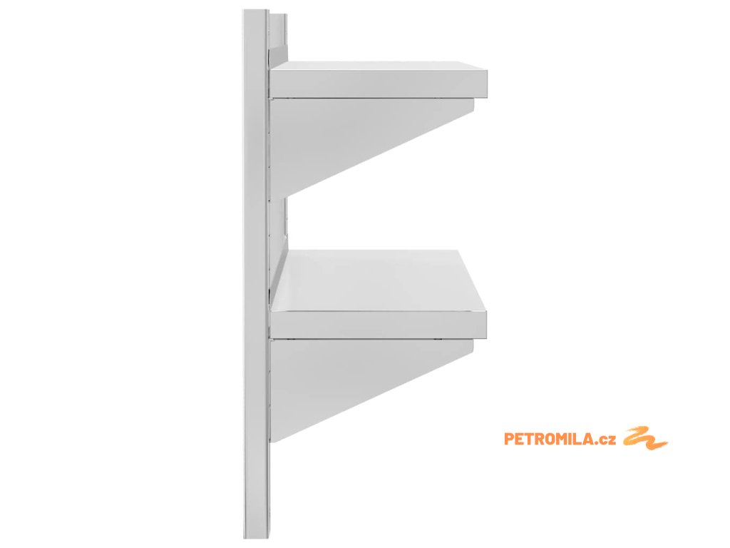 2patrová nástěnná police 75x23,5x60 cm stříbrná nerezová ocel
