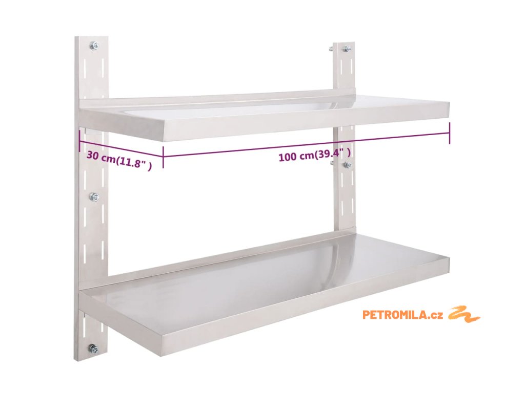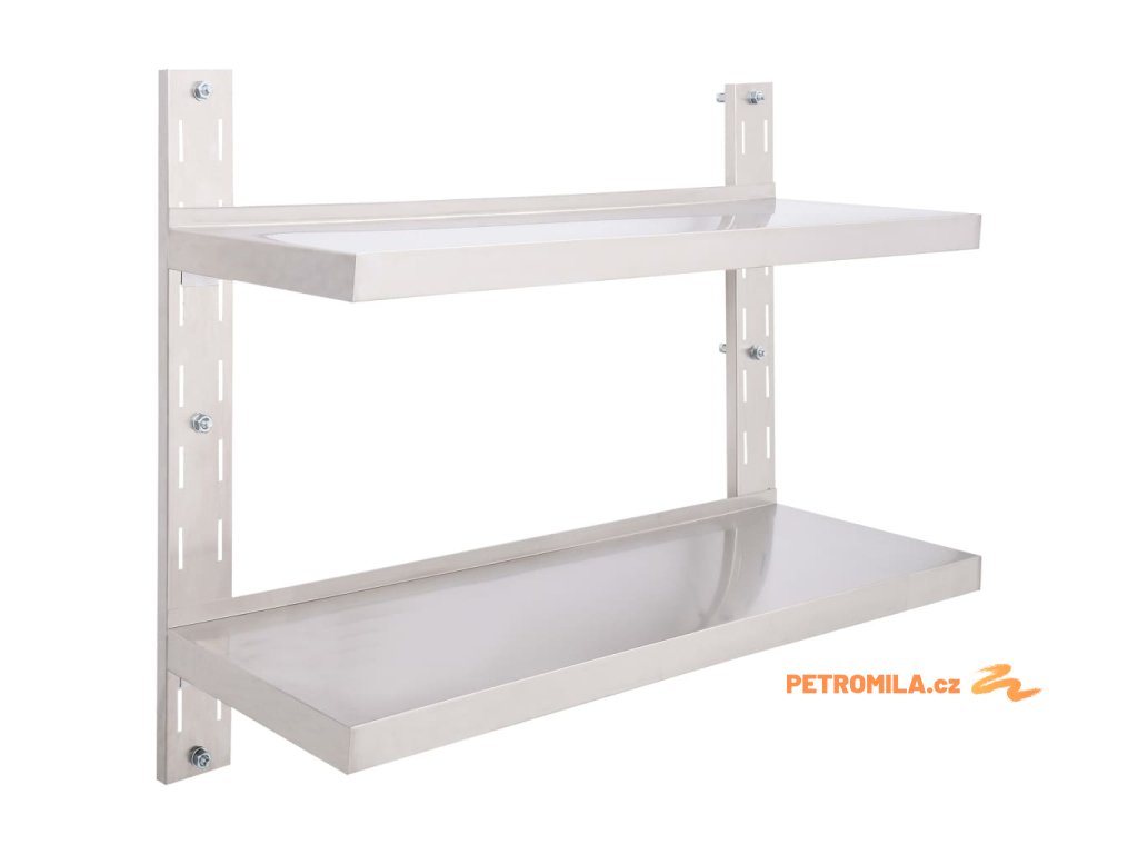 2patrová nástěnná police z nerezové oceli 100 x 30 cm